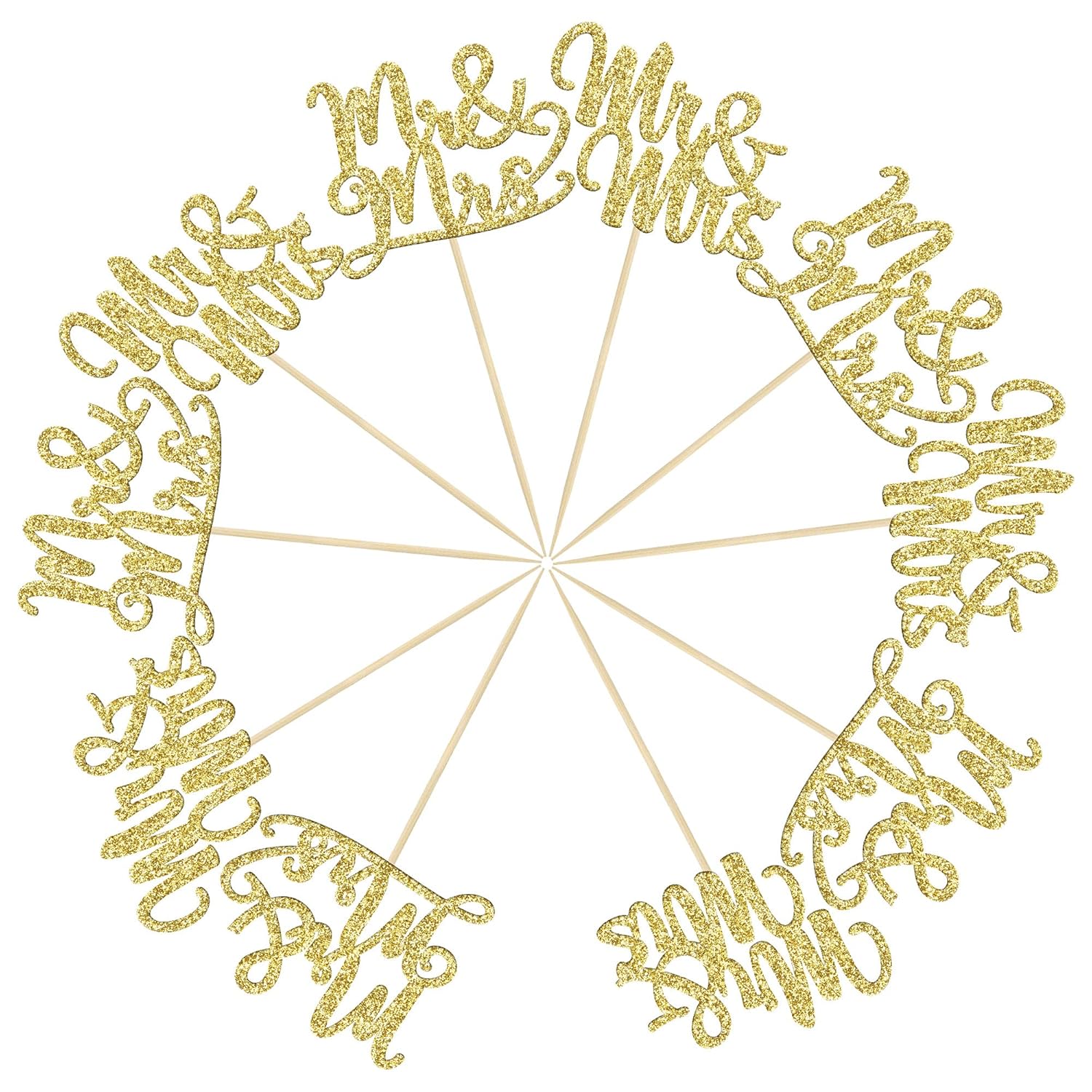 - 💍Gold Mr Mrs Cupcake Toppers are so cute and good for bridal shower party, Mr Mrs theme party, wedding anniversary party cupcake decorations or other party celebration. Make any plain looking cake creative.