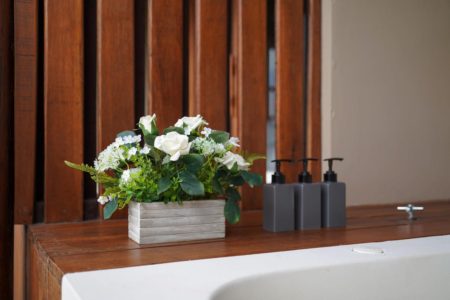 - 🤍【High Space Utilization】:The artificial roses arrangement are fixed in a wooden box that is just the right size to be placed anywhere. It can make full use of your space decoration, perfect for coffee table, shelf decor, kitchen, bathroom, office, bedroom, holidays decorations.