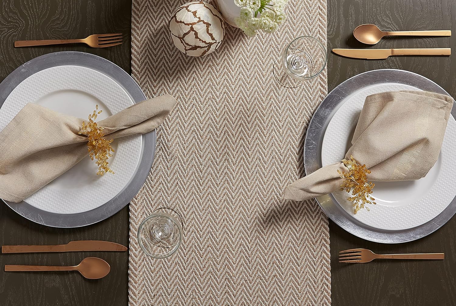 - TIMELESS DESIGN: Like a favorite knit sweater, the runner has lots of texture and full of detail, fringed edges have a casual look that works with any style of dishes