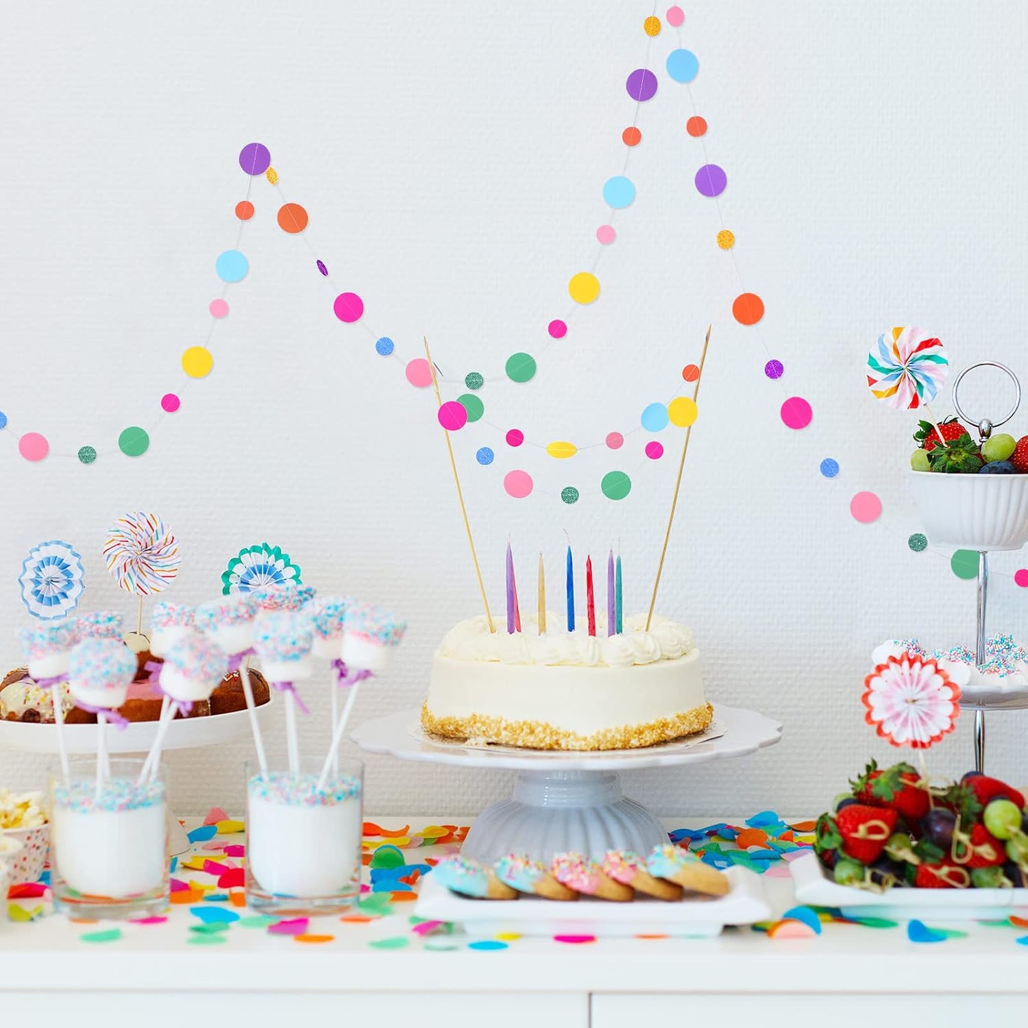Outus 10 Pieces Colorful Dots Paper Garland Round Glitter Garland Hanging Confetti Streamers Backdrop for Candy Birthday Classroom Halloween Trunk or Treat Car Decoration (Rainbow)