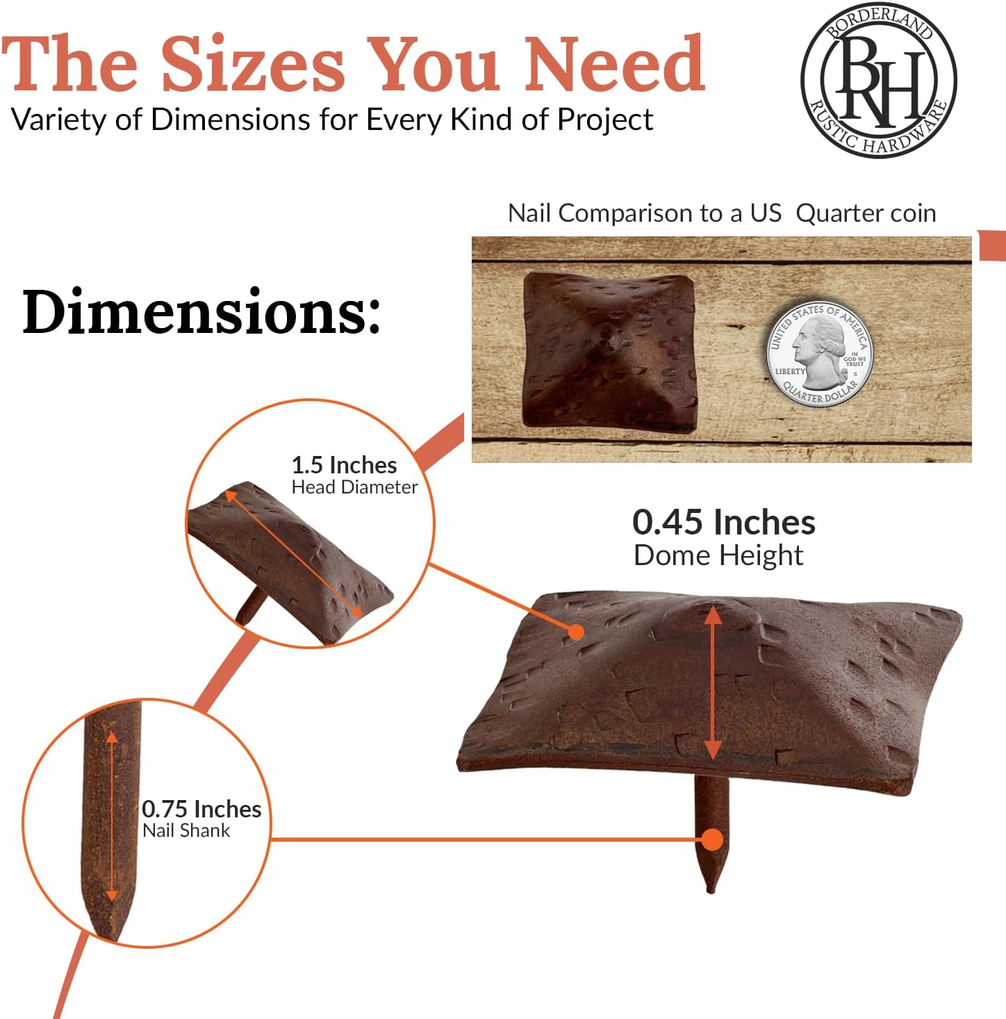 10 Pack 1.5" Square Head Iron Clavos Decorative Nails – Sealed Rusted – Handmade Rustic Square Fasteners for Farmhouse Shutters, Faux Wood, Barn Doors, Shutters, and Gates – Ornamental Wood Accent
