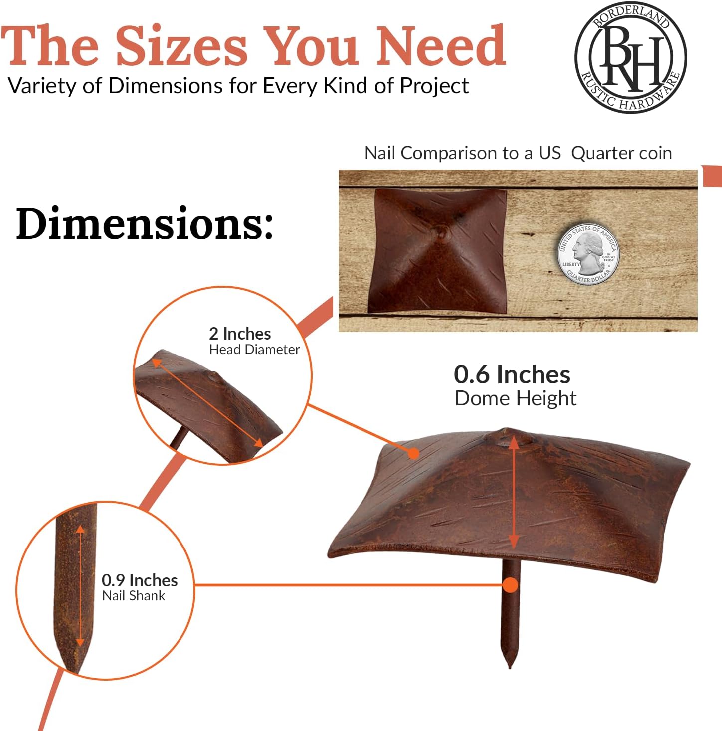 10 Pack 2" Square Head Iron Clavos Decorative Nails – Sealed Rusted – Handmade Rustic Square Fasteners for Farmhouse Shutters, Faux Wood, Barn Doors, Shutters, and Gates – Ornamental Wood Accent