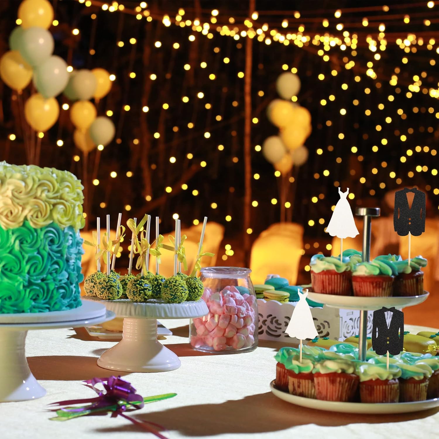 24pcs Bride and Groom Cupcake Toppers Wedding Dress and Tux Cupcake Picks Bridal Shower Wedding Engagement Anniversary Party Cake Decorations Supplies