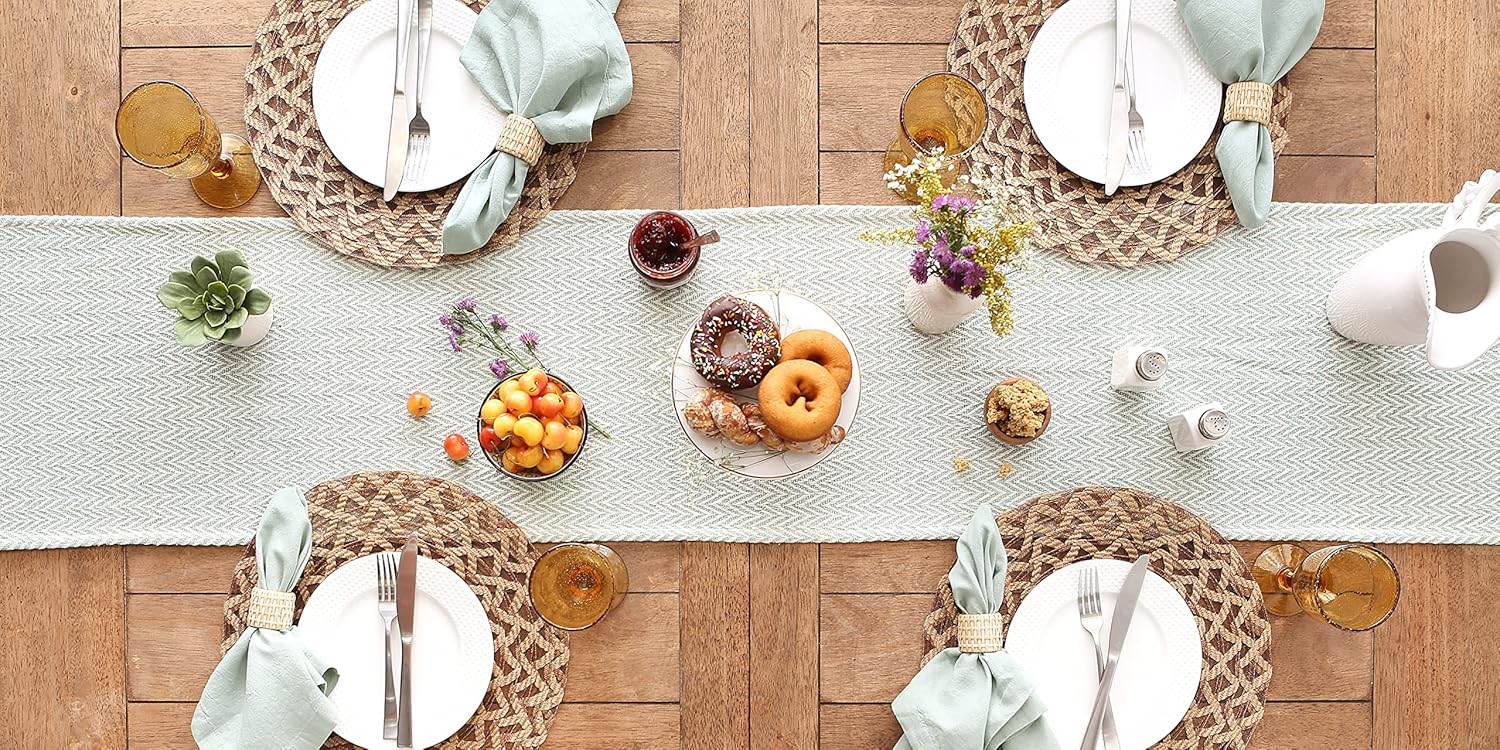 - TIMELESS DESIGN: Like a favorite knit sweater, the runner has lots of texture and full of detail, fringed edges have a casual look that works with any style of dishes