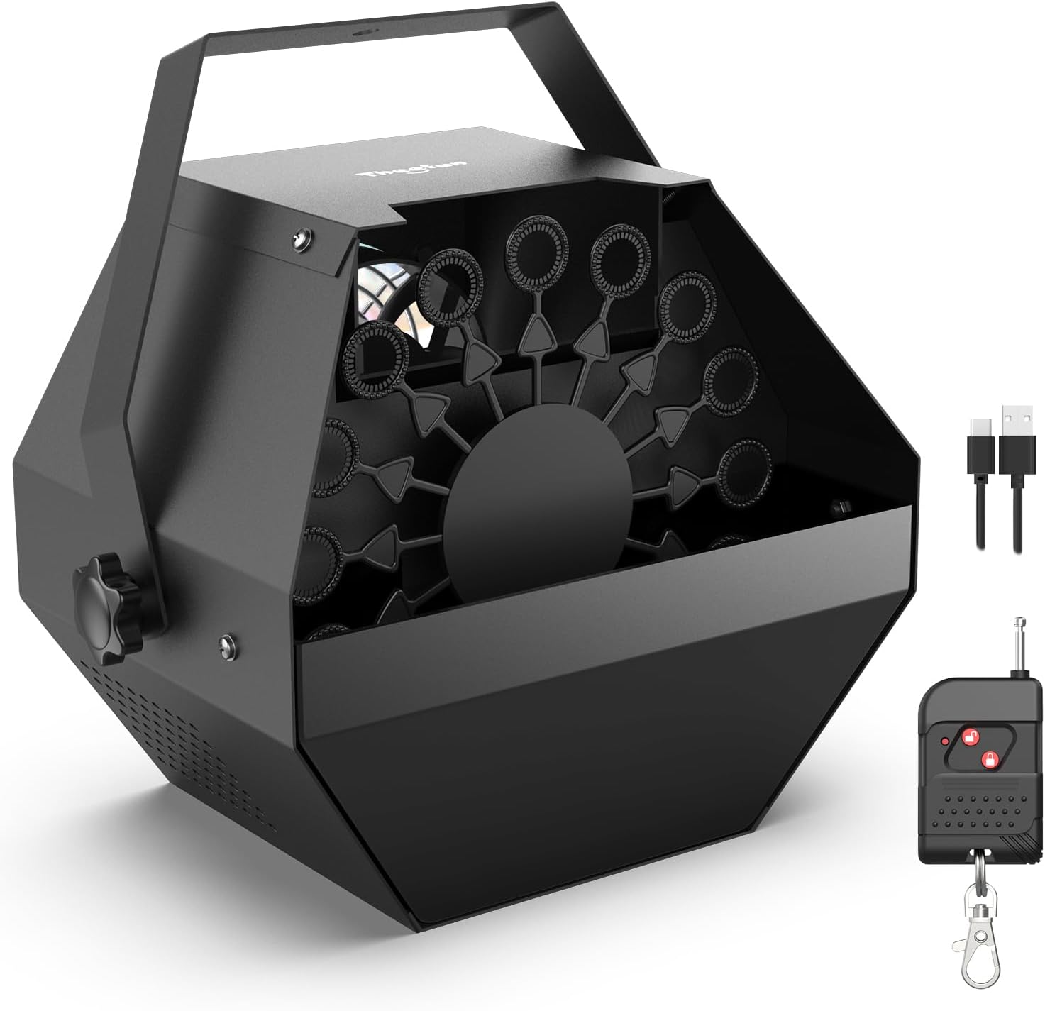 Theefun Bubble Machine: Remote Control 750ML Metal Bubble Blower Wireless USB Plug-in or 4 Batteries Operated High Bubble Output Automatic Bubble Maker for Party Wedding Birthday Indoor Outdoor Use