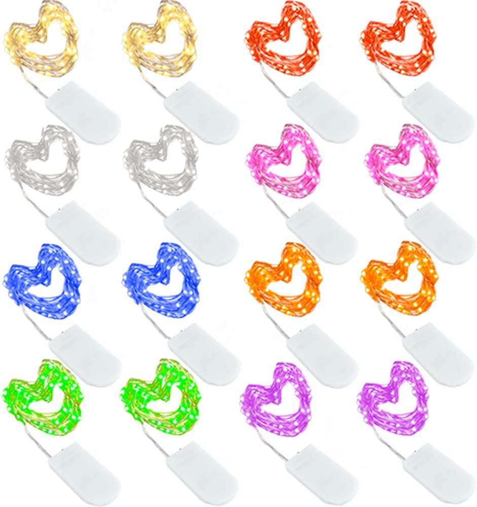 CYLAPEX 16 Pack Multicolor Fairy Lights, Battery Operated String Lights Micro LED Starry String Lights on 3.3ft/1m Silvery Copper Wire for Christmas Decoration Costume Wedding Party Decor