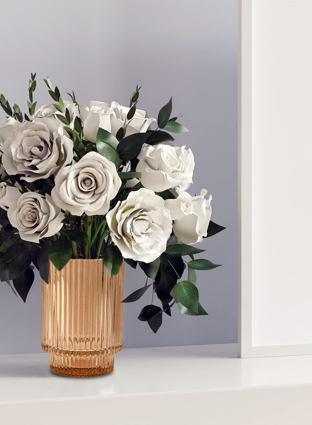 Serene Spaces Living Amber Ribbed Glass Votive Holder, Decorative Centerpiece for Wedding, Christmas, Thanksgiving, Party, Dining Table, Living Room, Home Décor, Measures 3.25" Diameter and 5" Tall