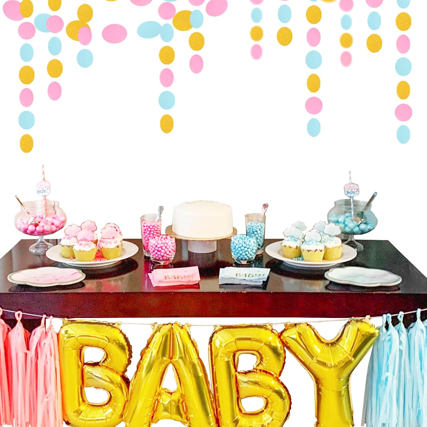 - 【Package Including】The decorations kit include 4 pack paper garland in 3 colors Blue,Gold,Pink,each garland is approx 13 feet in length,totally 52 feet in length.Each one has 40 pieces of circle dots 1.97".