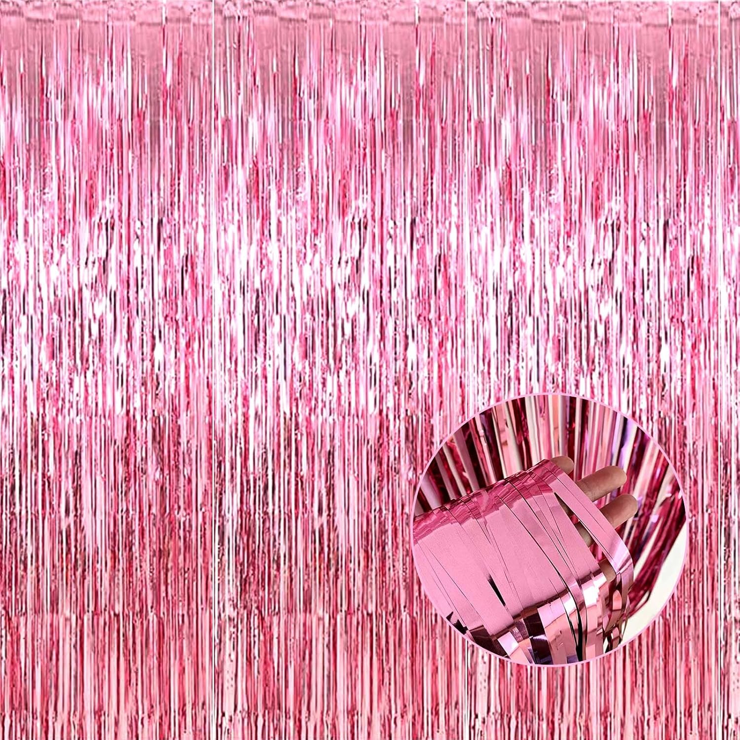 4 Pack Pink Foil Fringe Curtain Backdrop, 3.28Ft x 8.2Ft Metallic Tinsel Foil Fringe Streamer Curtains for Photo Booth Props, Birthday, Wedding, Valentine's Day Decoration Party Supplies