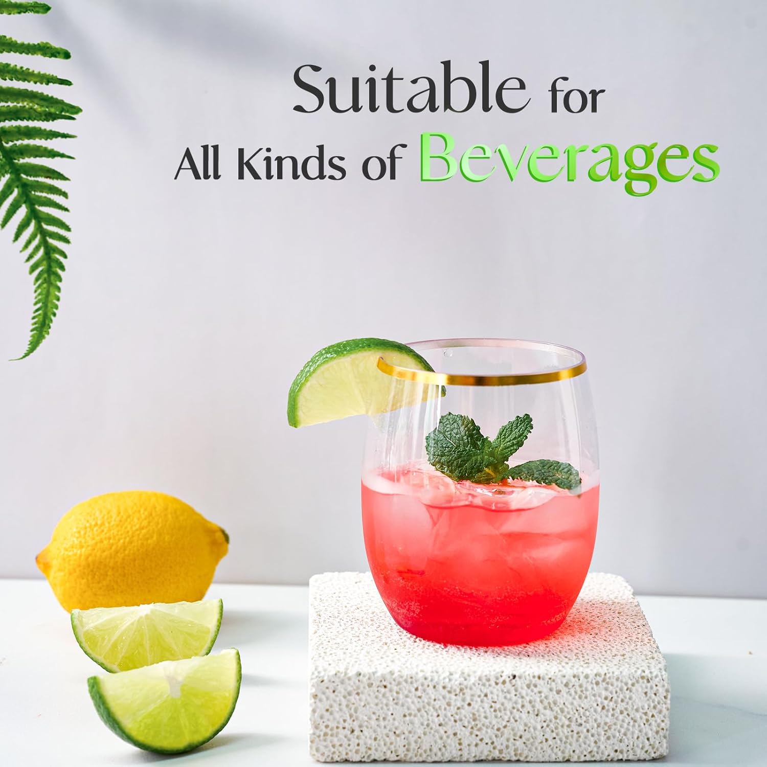- Our gold rim stemless plastic wine glasses are heavy duty, unbreakable, shatterproof, disposable and reusable; High quality PET plastic makes the wine glass look crystal clear and adds a touch of ambiance to your party