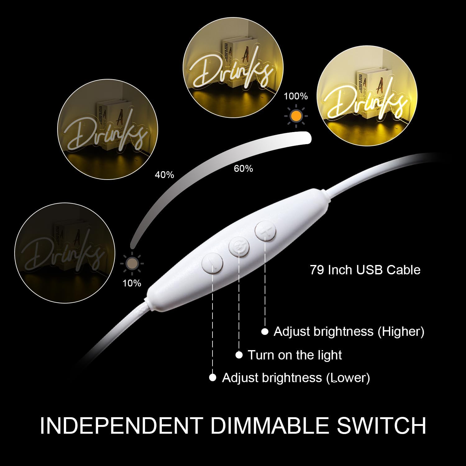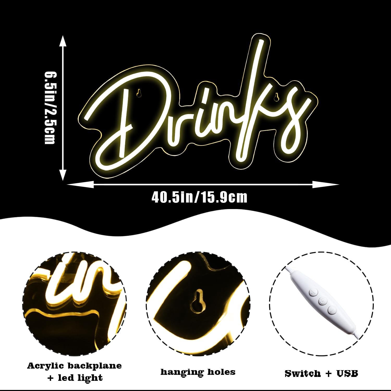 - Superior Craftsmanship:The "Drink" bar neon sign is crafted with attention to detail. The neon wall decor tubing is impeccably shaped, emitting a consistent warm white glow that enhances the ambiance of my home bar. The backing feels robust and well-made, ensuring durability.