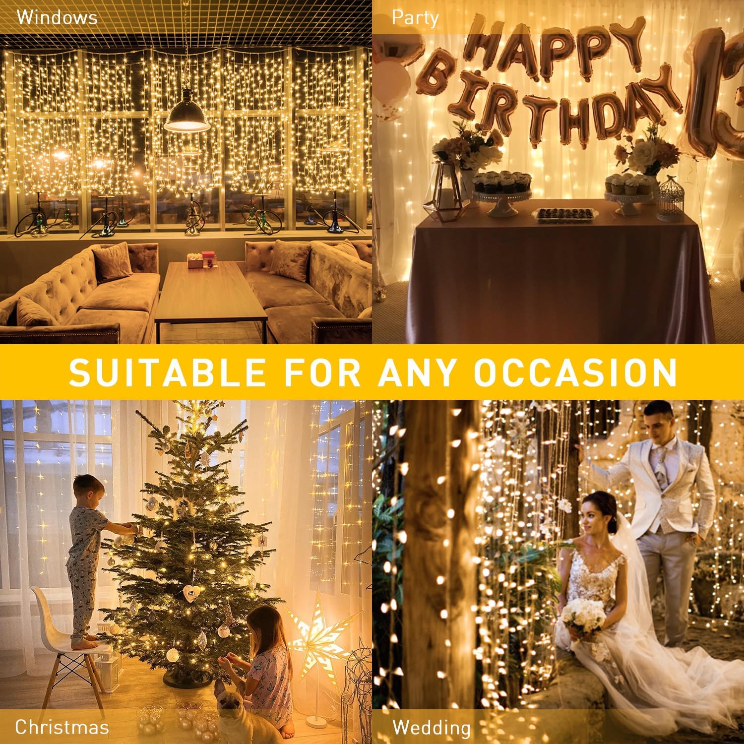 - ULTRA-LONG 600 LED CHRISTMAS CURTAIN LIGHTS: The Christmas curtain lights (non-connectable) come with 20 light strands, each containing 30 LEDs for a total of 600 LEDs. It gives off a warm soft glow, and really adds a nice touch of oomph to your home. The 19.6ft curtain string lights are 2 times the length of general ones, making them sufficient to cover most windows and walls, great for your room decor. NOTE: for stability of light brightness, multiple sets of these lights can NOT be connected