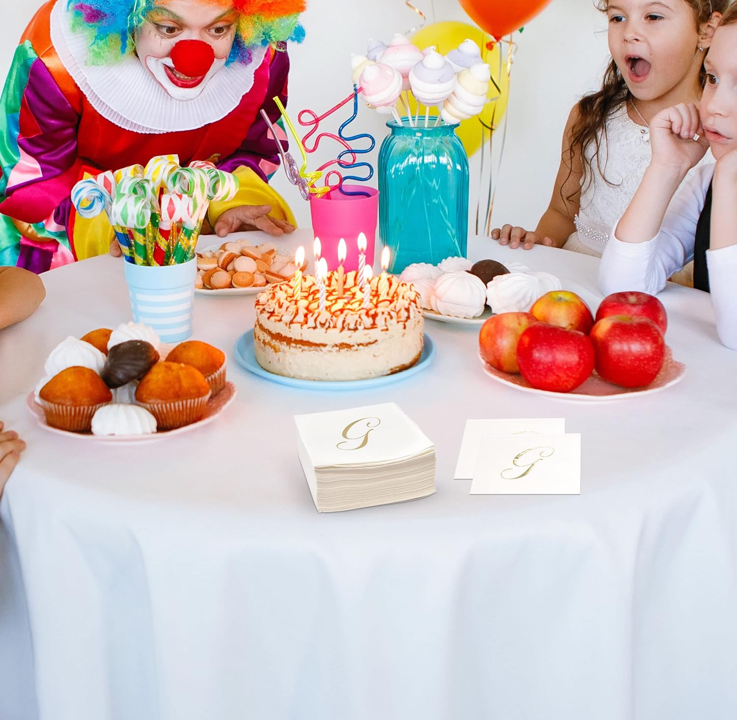 - High Quality: Napkins are made of high quality thick paper. Napkins are soft and absorbent & dry your hands quickly. These personalized napkins will be great for any party. The metallic gold G initial party napkins really adds dimension to your parties as your guests will love the pretty design.
