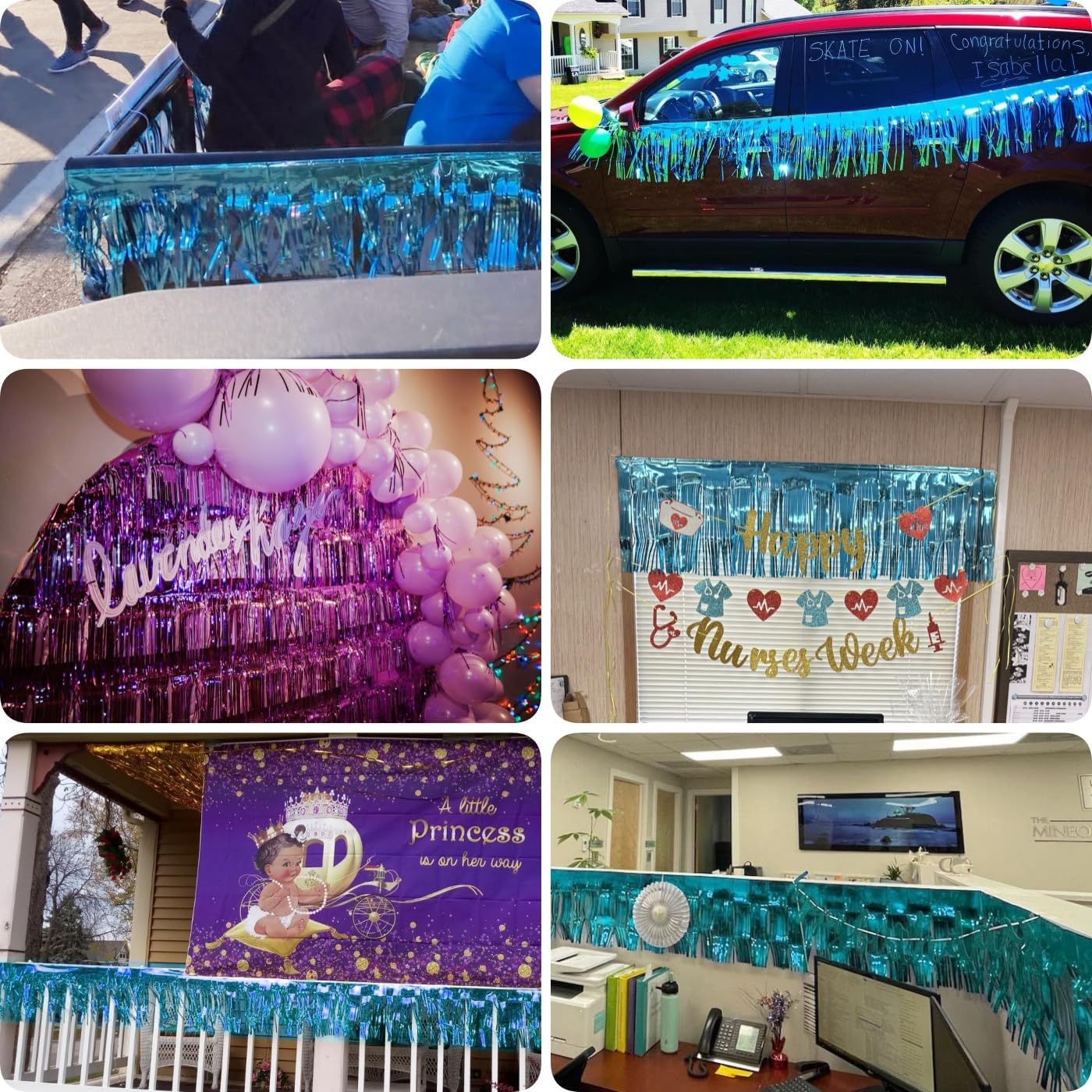 - Perfect for decorating a trailer for a parade floats, as table skirt, decor a backdrop or anywhere you want to add shimmer.