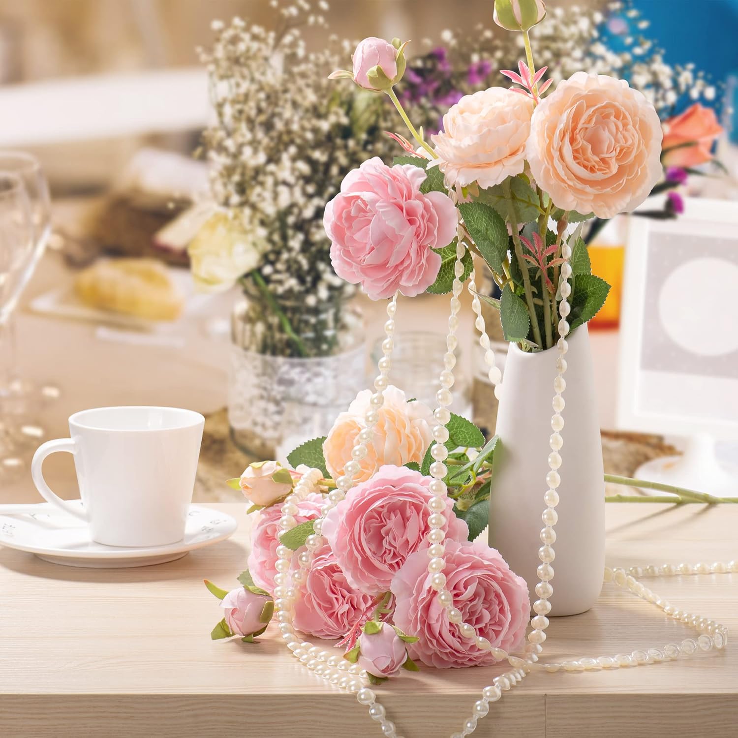 - Pearl Decorations: Pearl garland can not only be used for Christmas and wedding decorations, but also very suitable for other party events such as party events, exhibitions, receptions and other different scenarios. For decorating bridal bouquets, invitations, dresses, hairpins, necklaces, etc
