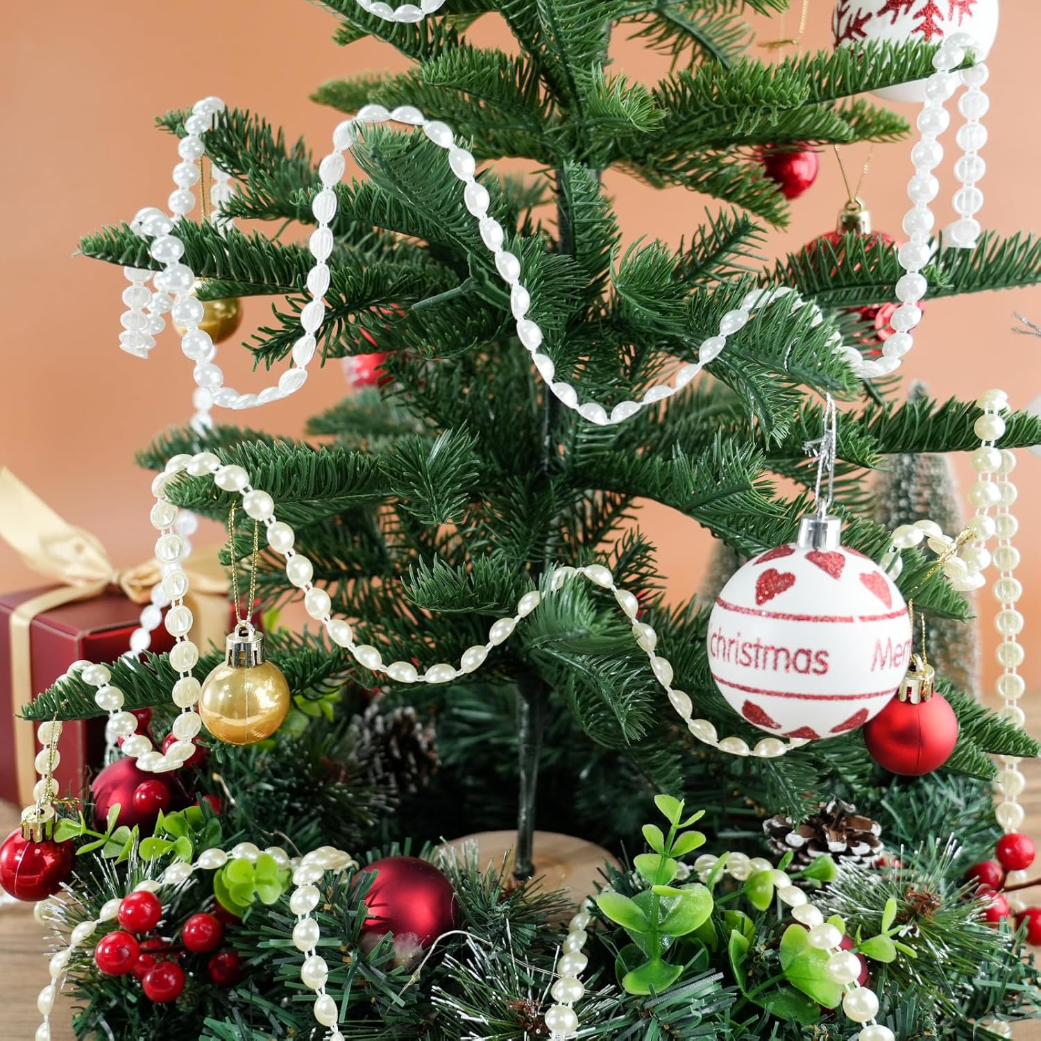 - Faux Half-pearl Rolls: It can be cut to the desired length. You can easily adjust the pearl strand length and cut to any length you need for your ornaments or DIY crafts. Each pearl is melted on a sturdy nylon cord, so it won't scatter, and it's easy to handle