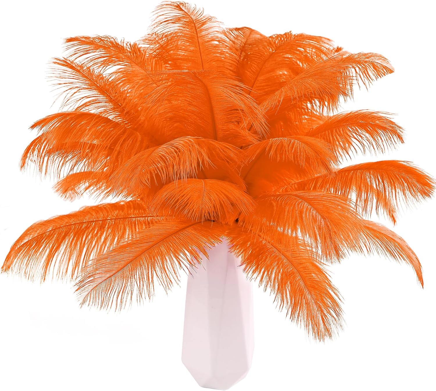 THARAHT Orange Ostrich Feathers 24pcs Natural Bulk 10-12Inch 25cm-30cm for Crafts Wedding Party Centerpieces Halloween and Home Decoration Feathers