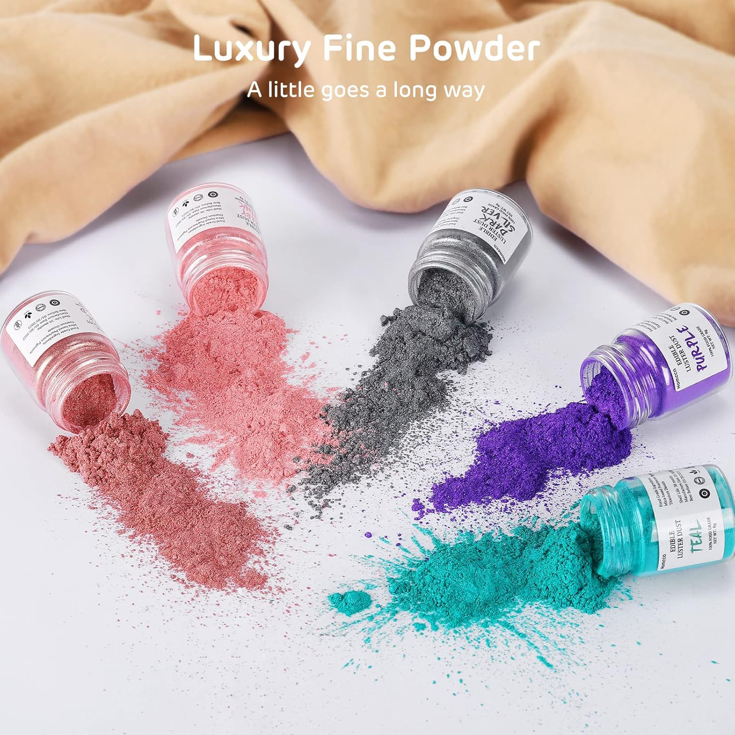 - LUXURY CAKE DUST -- Fine texture dust powder with shimmer result, this elegant luster dust helps to create high luster/glitter effect and adding a vibrant metallic finish to your project. With variety of colors to choose, gold dust is the most common colors, but the rose gold, silver, pink, bronze, Burgundy, pearl white, purple, teal and black also looks amazing