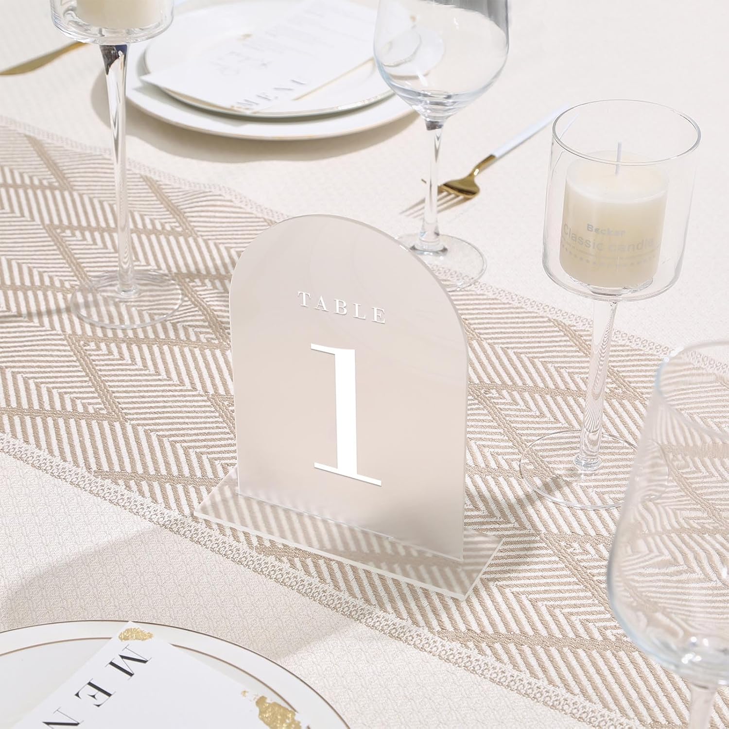 UNIQOOO Frosted Arch Wedding Table Numbers with Stands 1-15, 5x7" Acrylic Display Signs and Holders, Pack of 15, Perfect for Centerpiece, Reception, Decoration, Party, Anniversary, Event