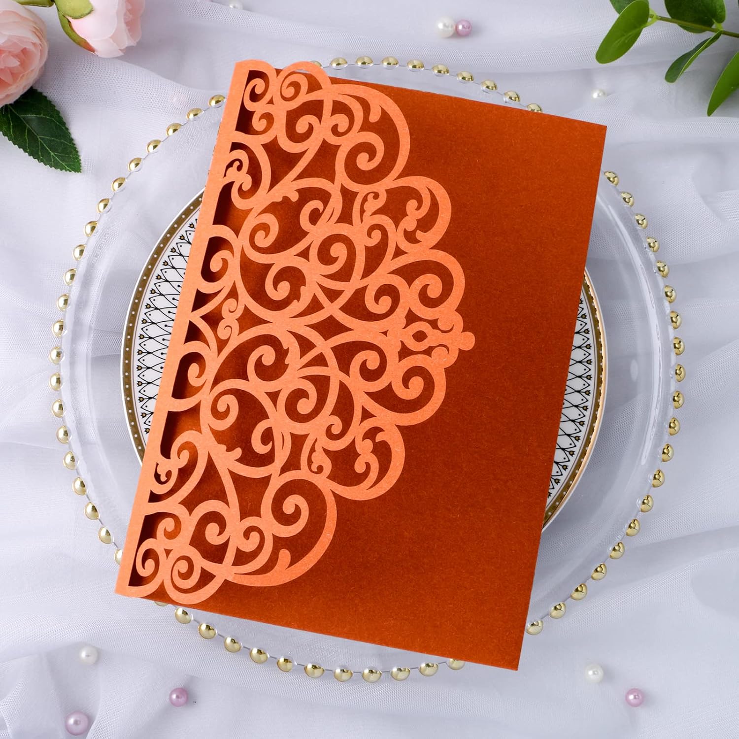 - 🥂【Occasion】Terracotta laser cut wedding invitations cards is perfect for wedding, sweet 16, engagement, anniversary, festival, bridal, baby shower, birthday graduation, ect.