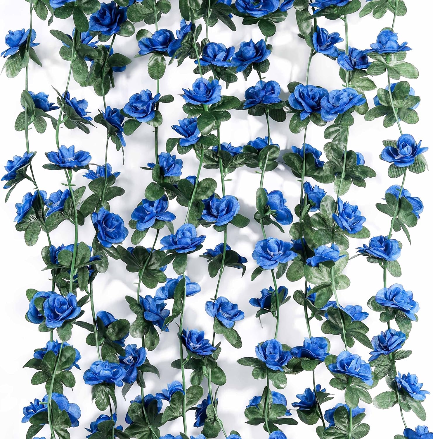 Miracliy 5Pcs 41FT Blue Flower Garland Artificial Rose Arch Vines Fake Spring Floral Garland for Flower Wall Backdrop Wedding Mothers Day Garden Tea Party Decoration