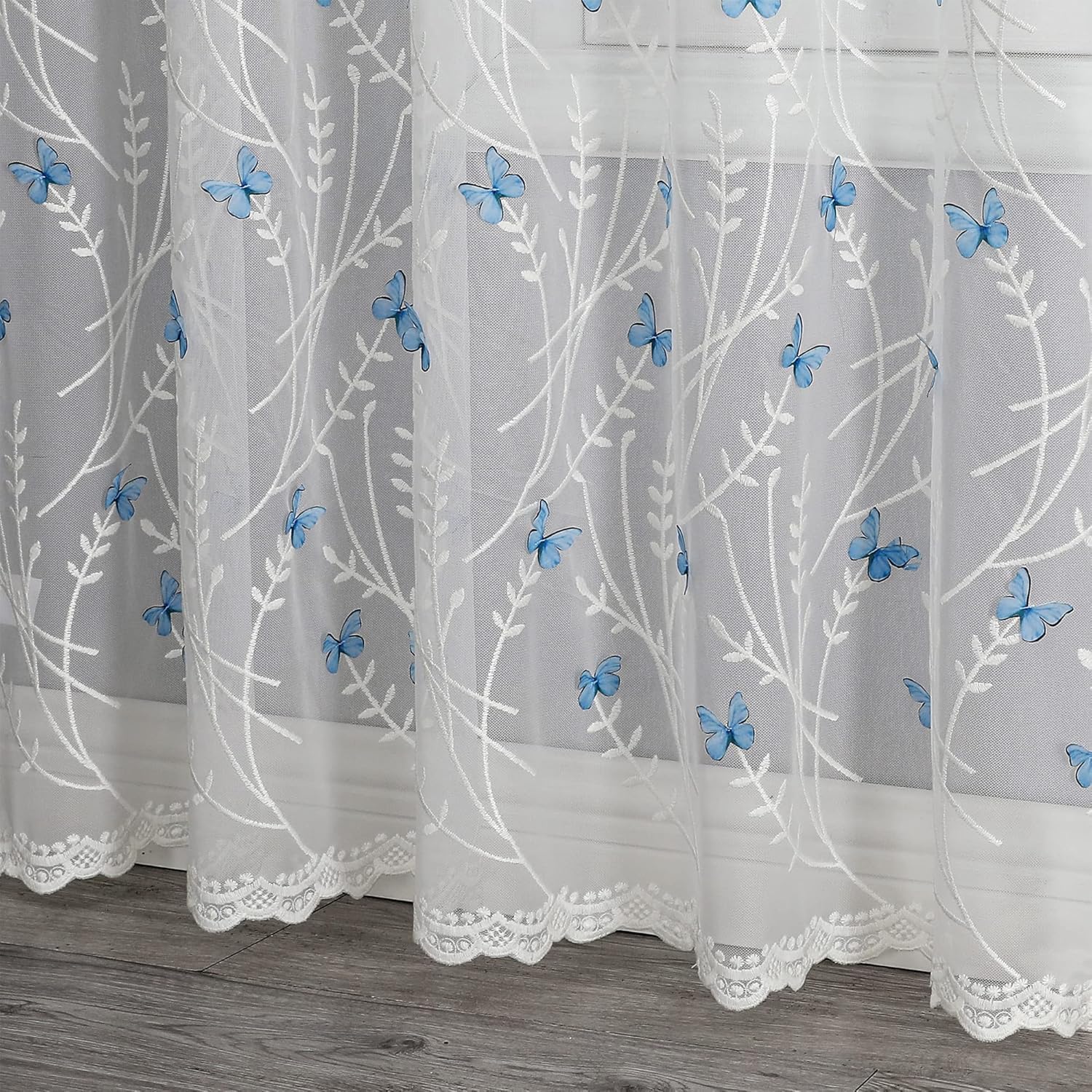 VISIONTEX White Sheer Voile Curtains, Decorative White Embossed Butterflies Rod Pocket Window Drapes for Home Kitchen, Living Room and Bedroom 54 x 84 Inch, Set of 2 Curtain Panels