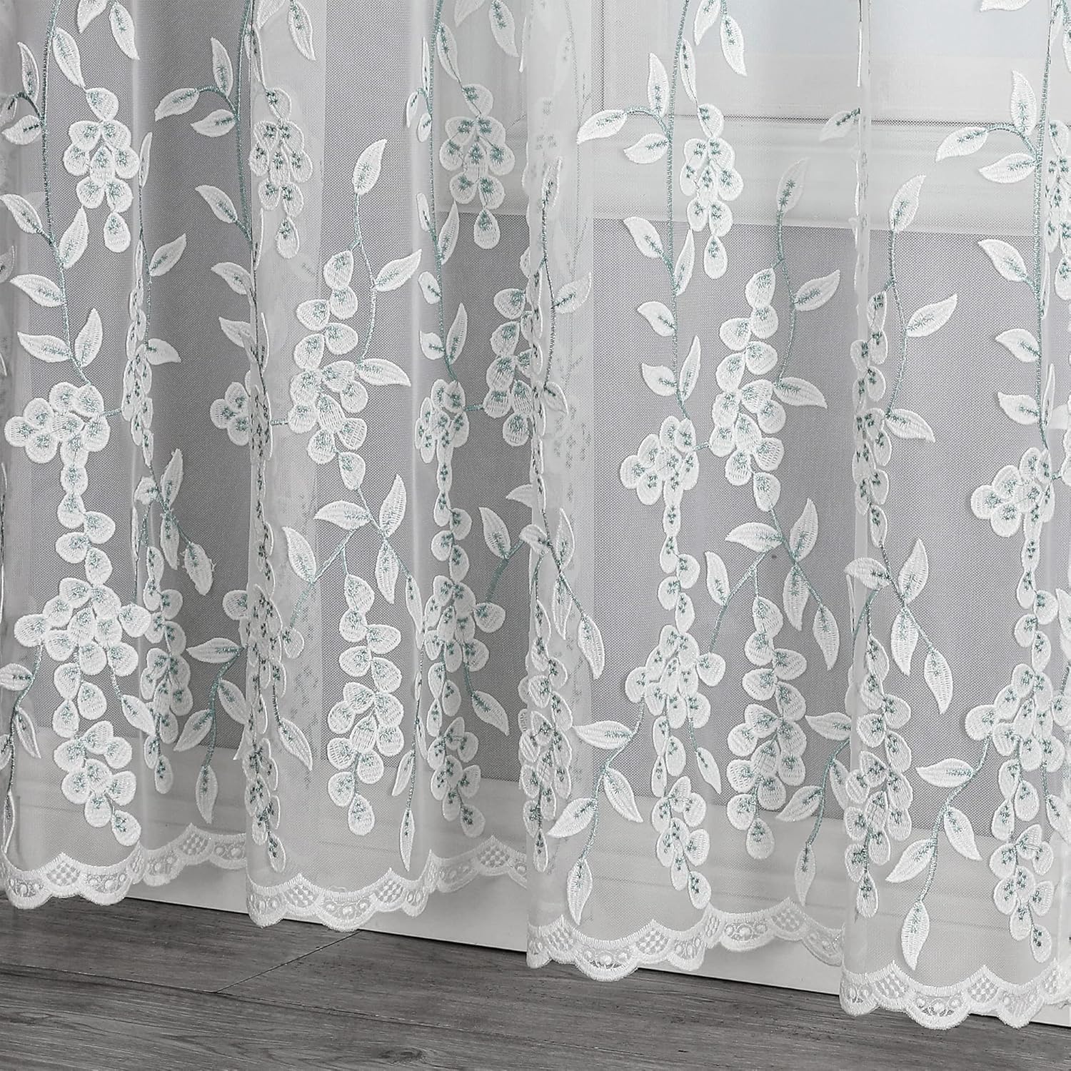 VISIONTEX White Sheer Voile Curtains, Decorative White Embossed Leaves Rod Pocket Window Drapes for Home Kitchen, Living Room and Bedroom 54 x 84 Inch, Set of 2 Curtain Panels
