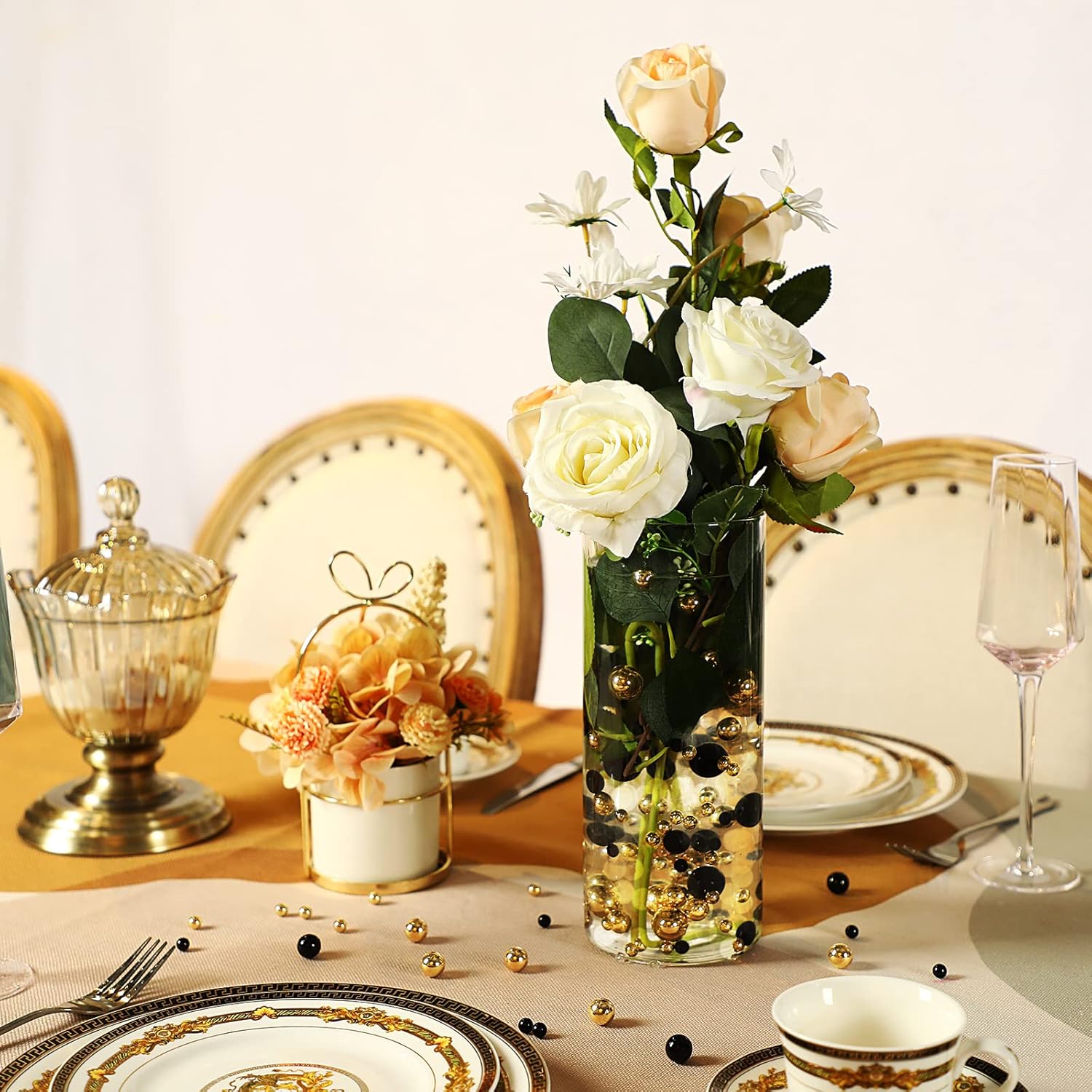 150 Pieces Vase Filler Faux Pearls Vase Makeup Beads No Hole Gloss Bead Mixed Sizes Round Pearl for Home Party Wedding Decor, 8/14/20 mm(Gold, Black)