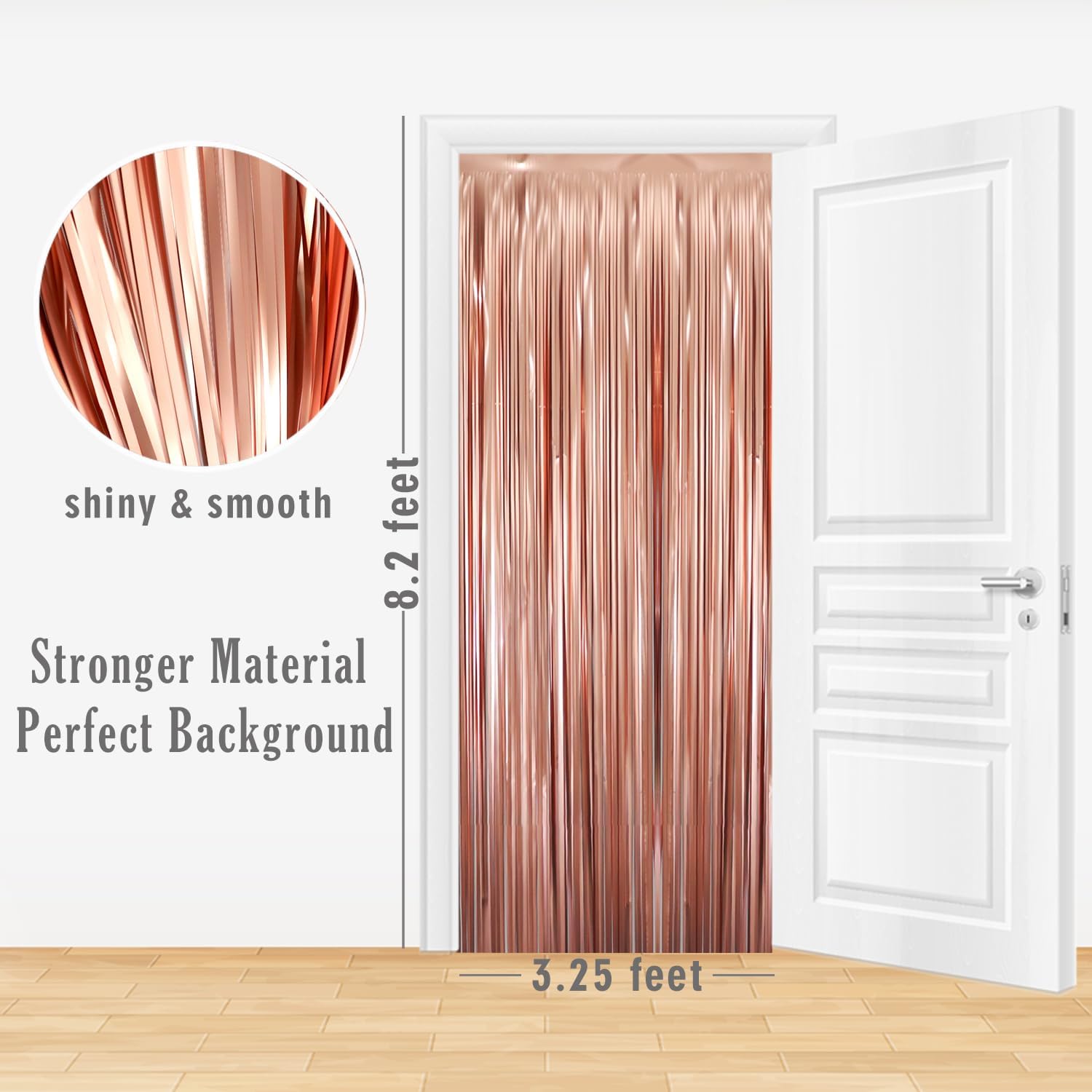 - Package Includes:1 pack matte rose gold foil fringe curtain,3.2 ft x 8.2 ft each,suitable for hanging on a door or coverage a wall fully