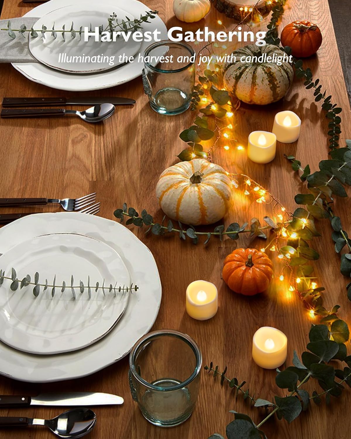 - VALUE SET: 48 battery-operated tea lights [warm white glow, ivory base] with pre-installed CR2032 batteries. Each tea light offers 200+ hours of glow, ensuring they last through your wedding/party/holidays