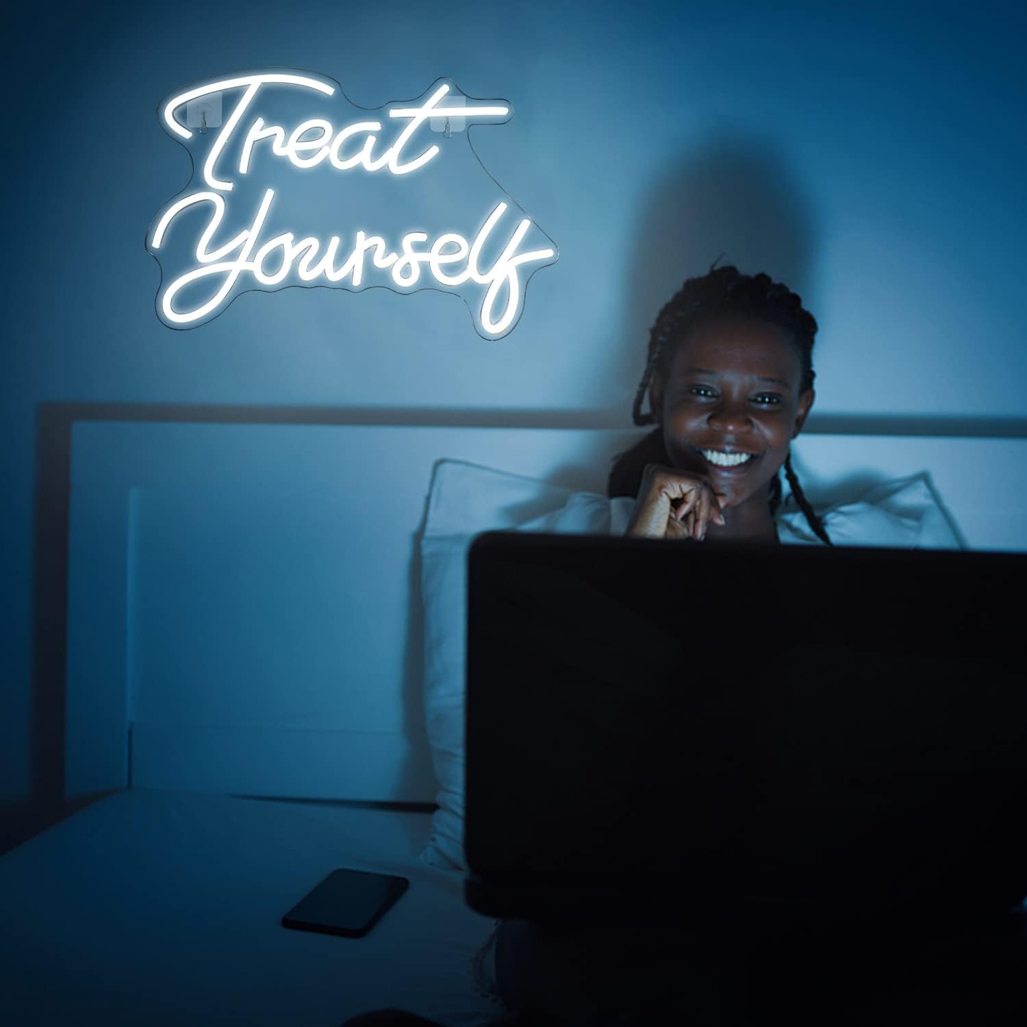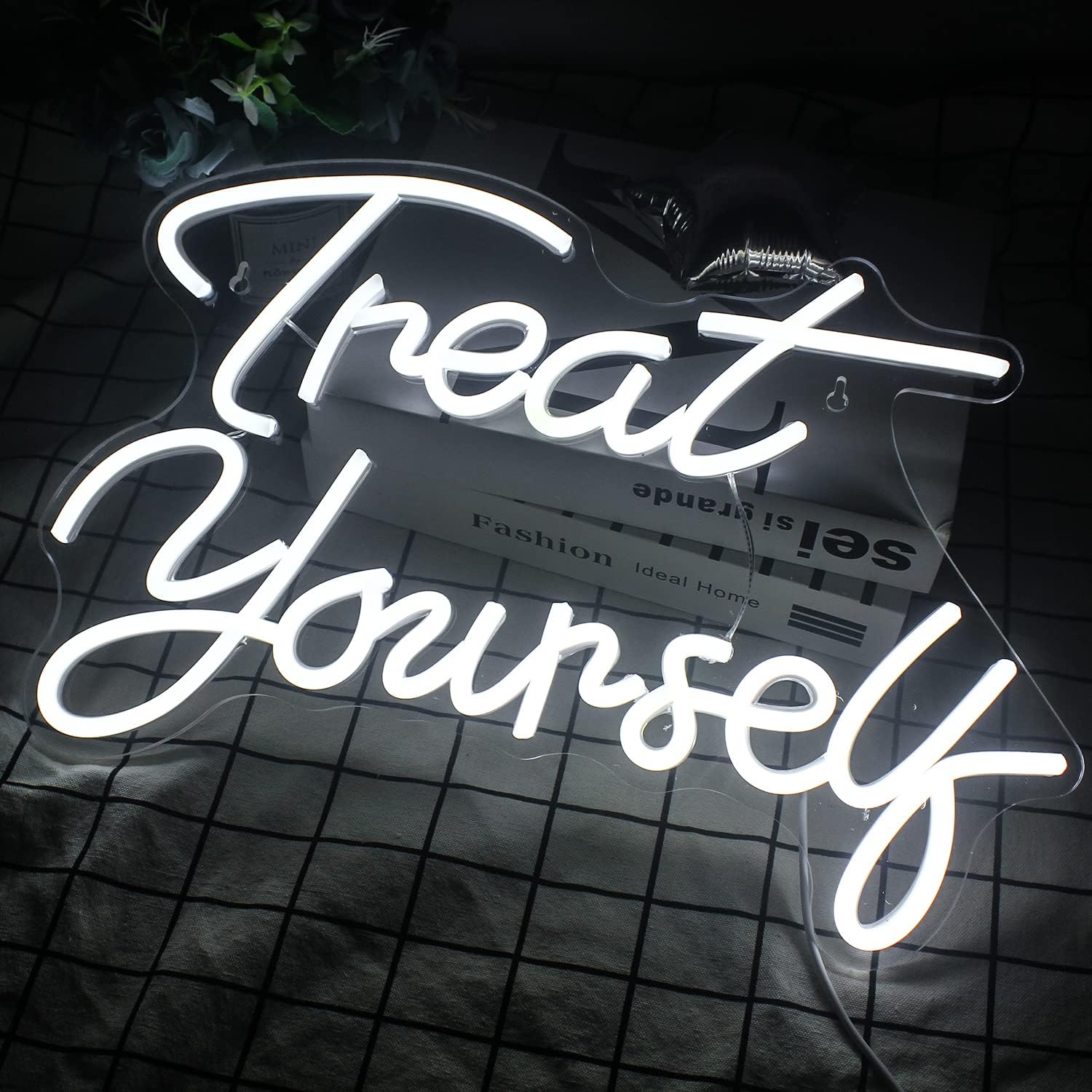Treat Yourself Neon Signs White Led Sign for Bedroom Wall Letter Neon Lights Wedding Signs Neon Room Decor for Birthday Gift Party Home Decor Bar