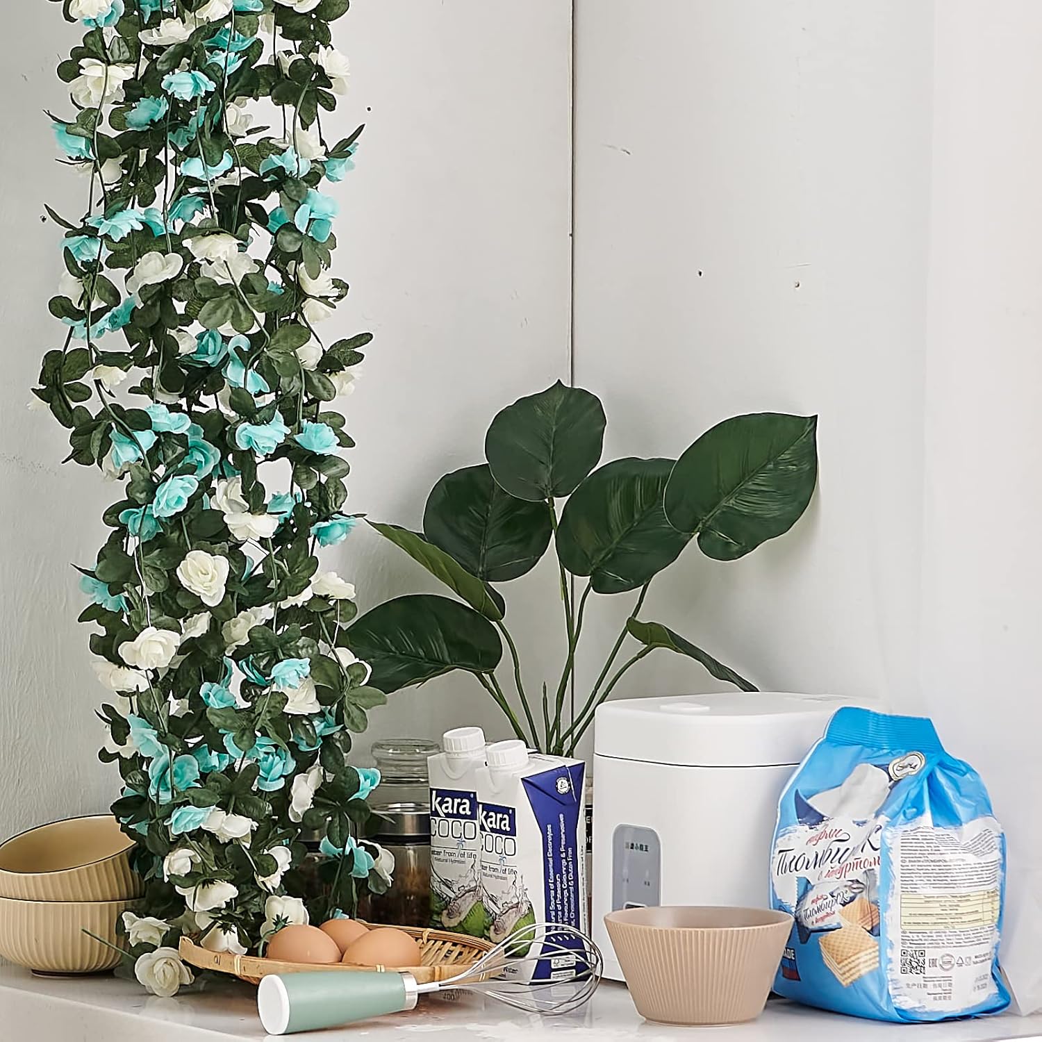 6 Pcs x 8.2 ft Flower Garland Artificial Rose Vine Flowers with Green Leaves Hanging Fake Roses Vine for Room Party Home Wedding Birthday Christmas Wall Arch Decor, White Blue Flower