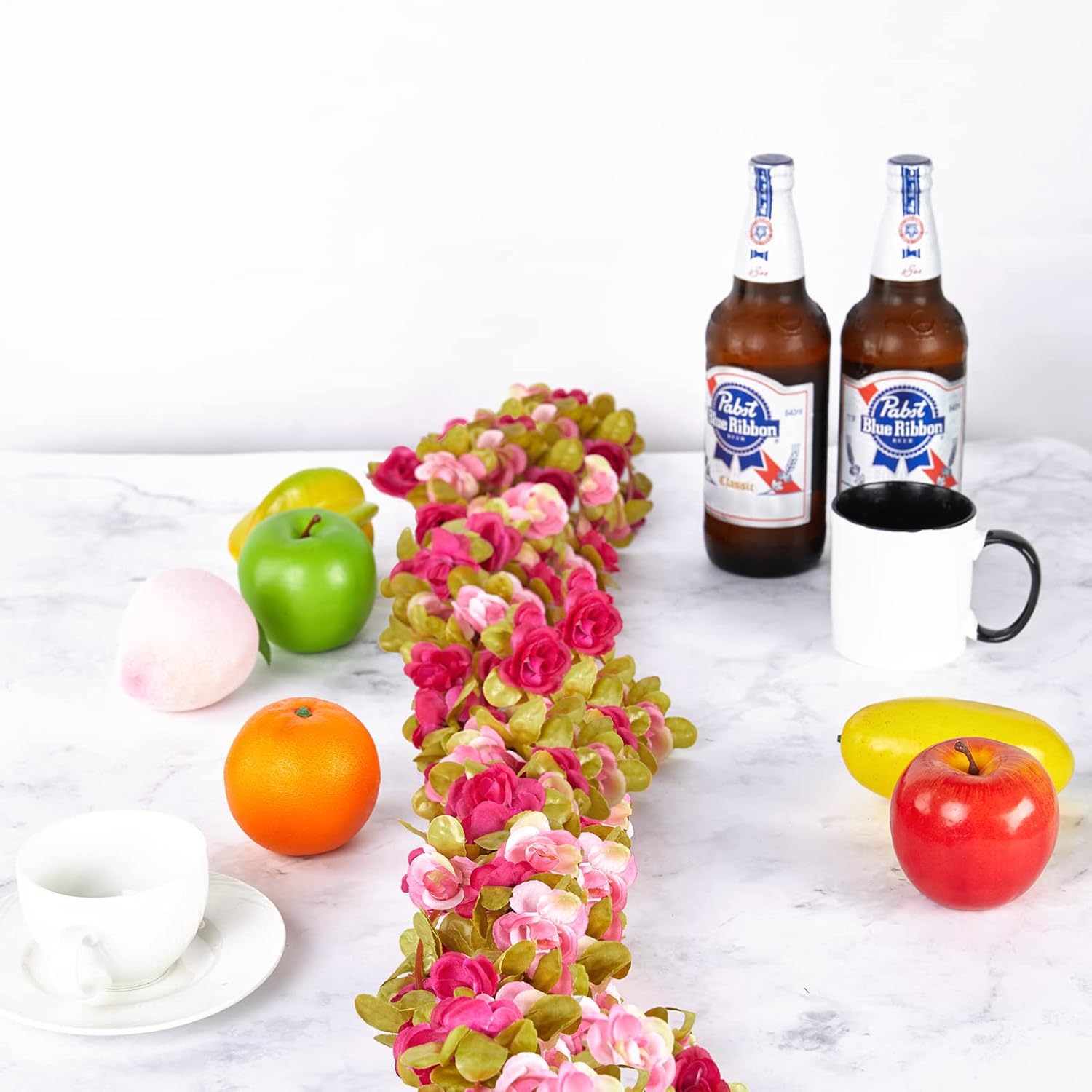 - Material & Features: PONKING fake rose garland is made of silk and plastic. Durable silk and plastic flowers ensures durability and no risk of leaves or flowers dying. The rose vine spares you from endless watering. Different from real rose flowers, our artificial vines with rich color layers and natural appearance will never fade. They will last forever. Nice choice for your daughter's bedroom