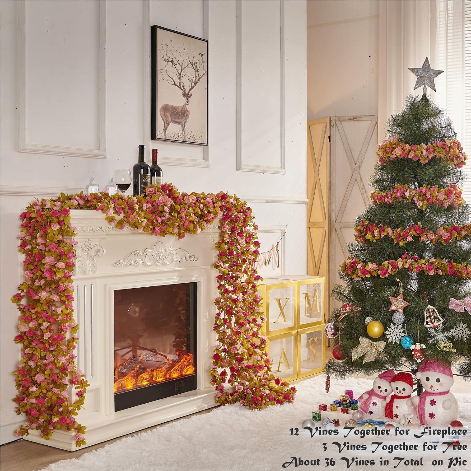 - Multi-use rose vine: With the vibrant color, PONKING fake rose vines are ideal for your wedding, party, vlentines, Christmas, birthday, DIY bouquets, arch home room decor, etc. They could also decorate your space with the string lights(not included). Adding more romantic atmosphere to you all