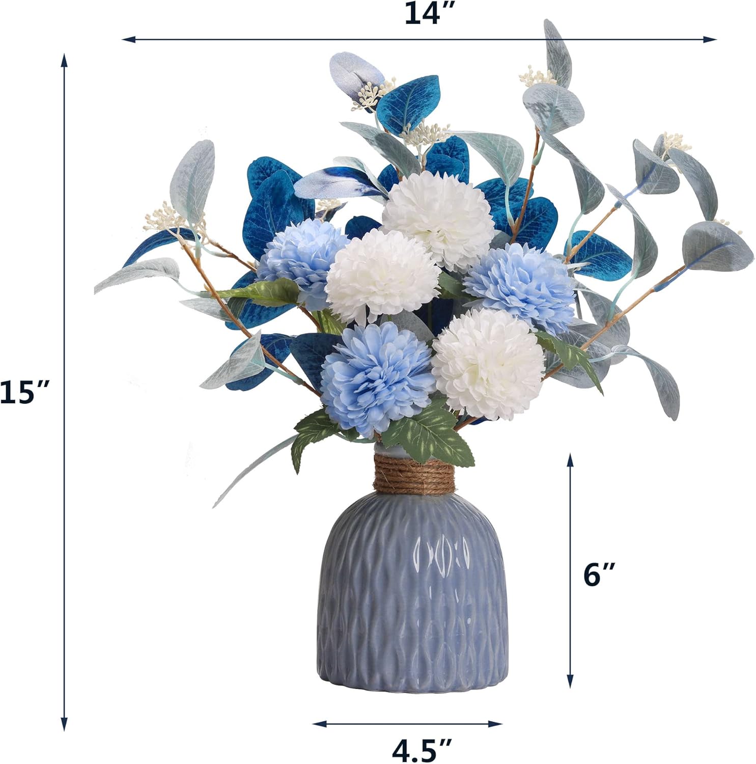 - Artificial flower and vase: Bottle diameter: 4.5 inches, overall height: 15 inches. Flowers and leaves are made of silk and plastic. The flowerpot is made of ceramics, which is exquisite and beautiful.