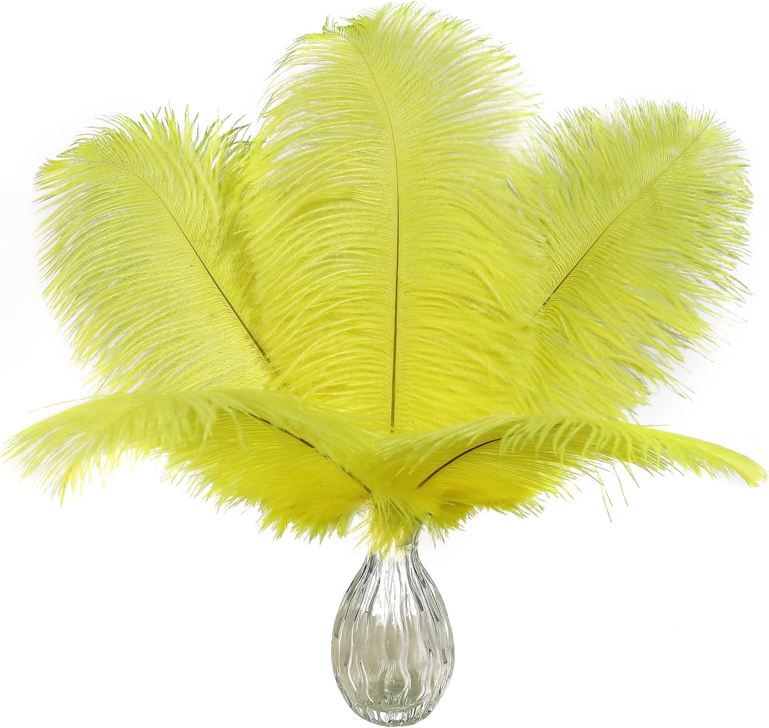 Ballinger Fluorescent Yellow Ostrich Feathers - 24Pcs 10-12inch Feathers Bulk for Vase, Party Centerpieces, Mardi Gras Decorations and Home Decor