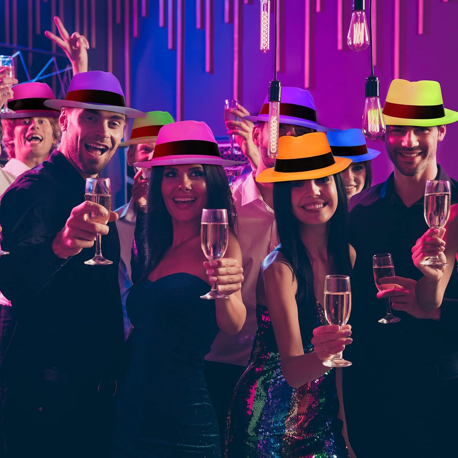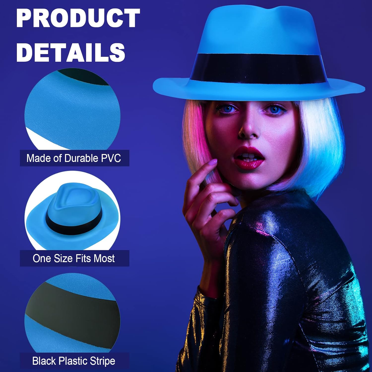 48 Pieces Neon Mafia Style Party Hats - Bright Dress Hats for Gangster Music Disco Birthday, Photo Booth Props and Favors