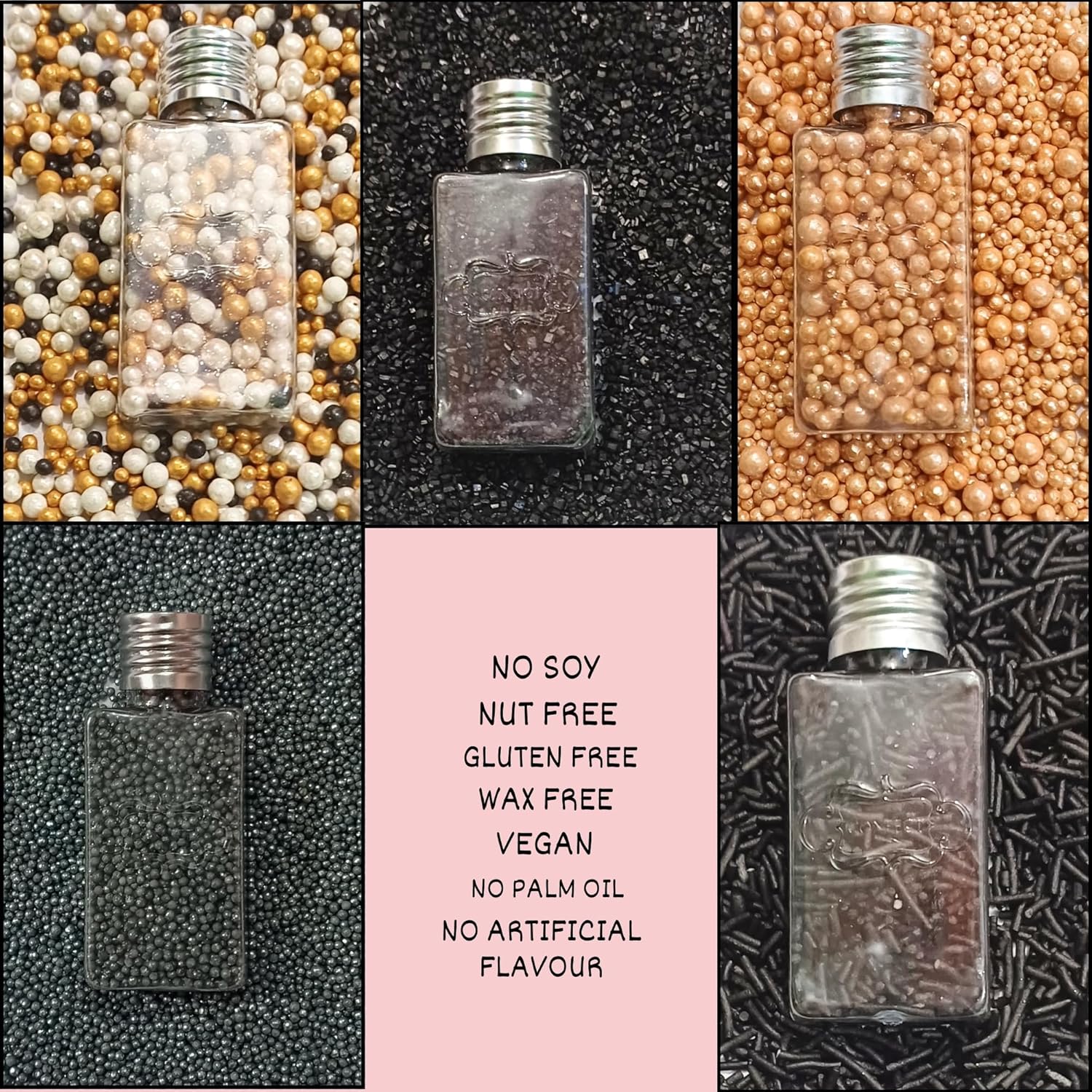 Confect Masquerade Sprinkles Mix – Champagne Gold & Black Pearl Dragees, Black Jimmies & Sparkling Sugar | Edible Sprinkles for Cakes, Cupcakes & Desserts | Vegan, Gluten-Free, Nut-Free, Soy-Free, Dairy-Free, Palm Oil-Free- 5 Oz