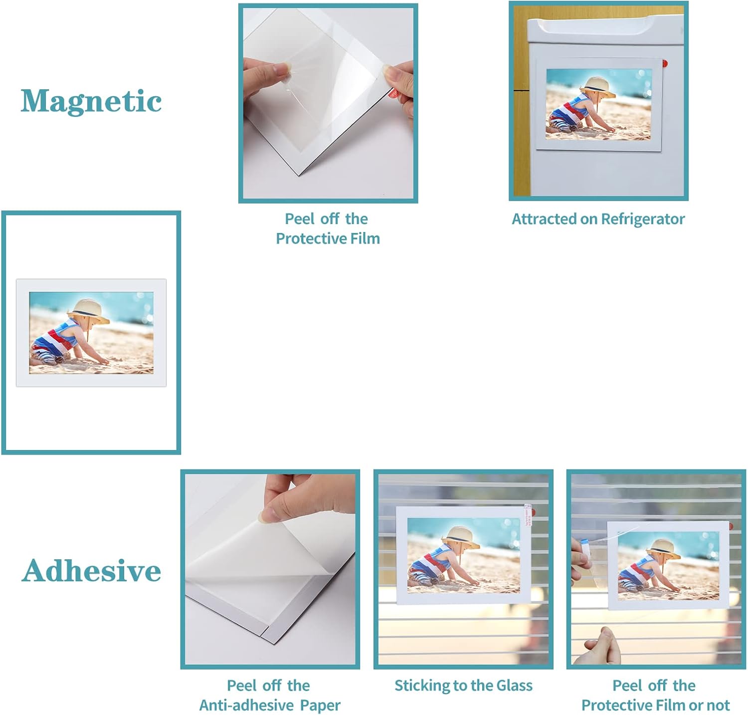 - White frames highlight your pictures, brighten your fridge, showcase your memories vividly. 12 packs of magnetic peel and stick frames meet your home decor and business needs at one time.