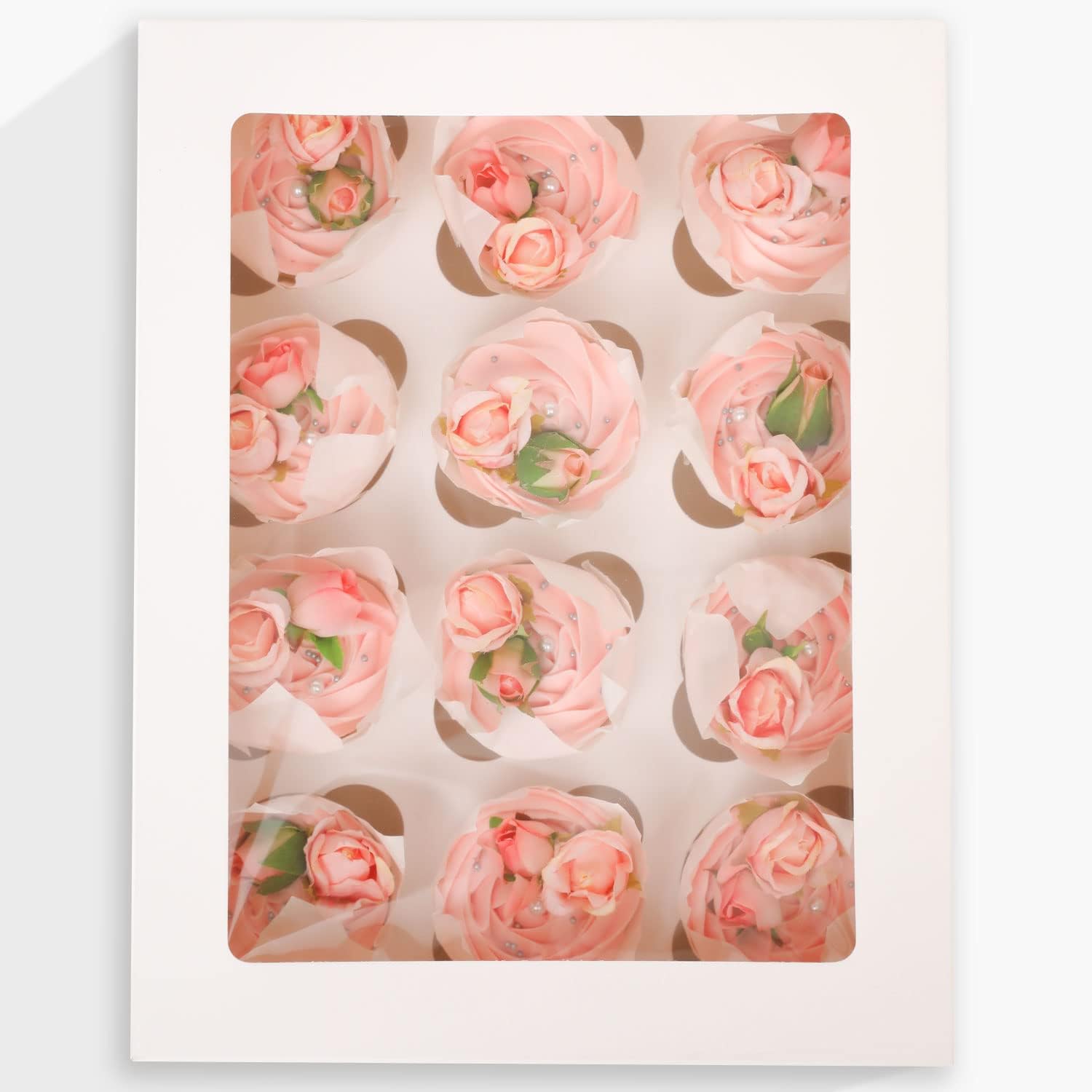12 Cupcake Containers 20-Packs White Cupcake Box Cupcakes Carrier, 12 Cupcake Boxes with Window 13"x10"x3.5"(Auto-pop up)