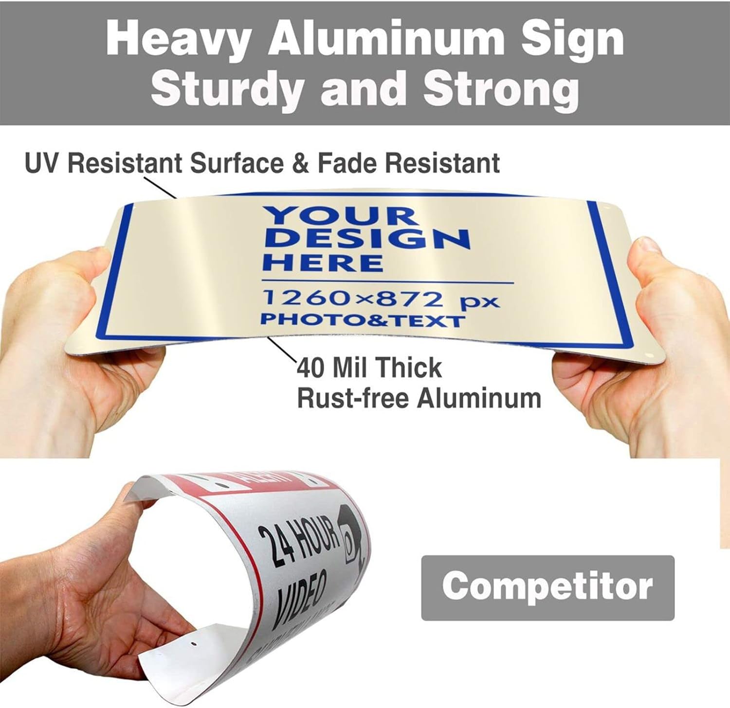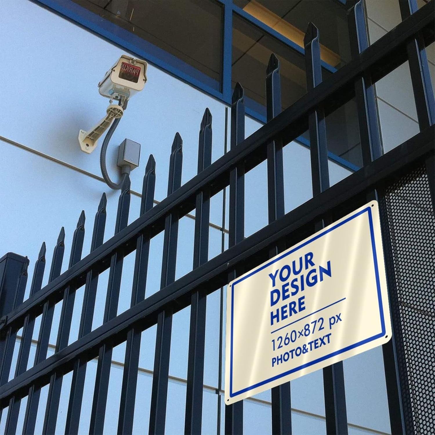 - 12 x 8 inch aluminum custom metal sign with 4 pre-drilled holes on the side that can be easily attached to any surface such as walls, doors or fences with cable ties or screws.