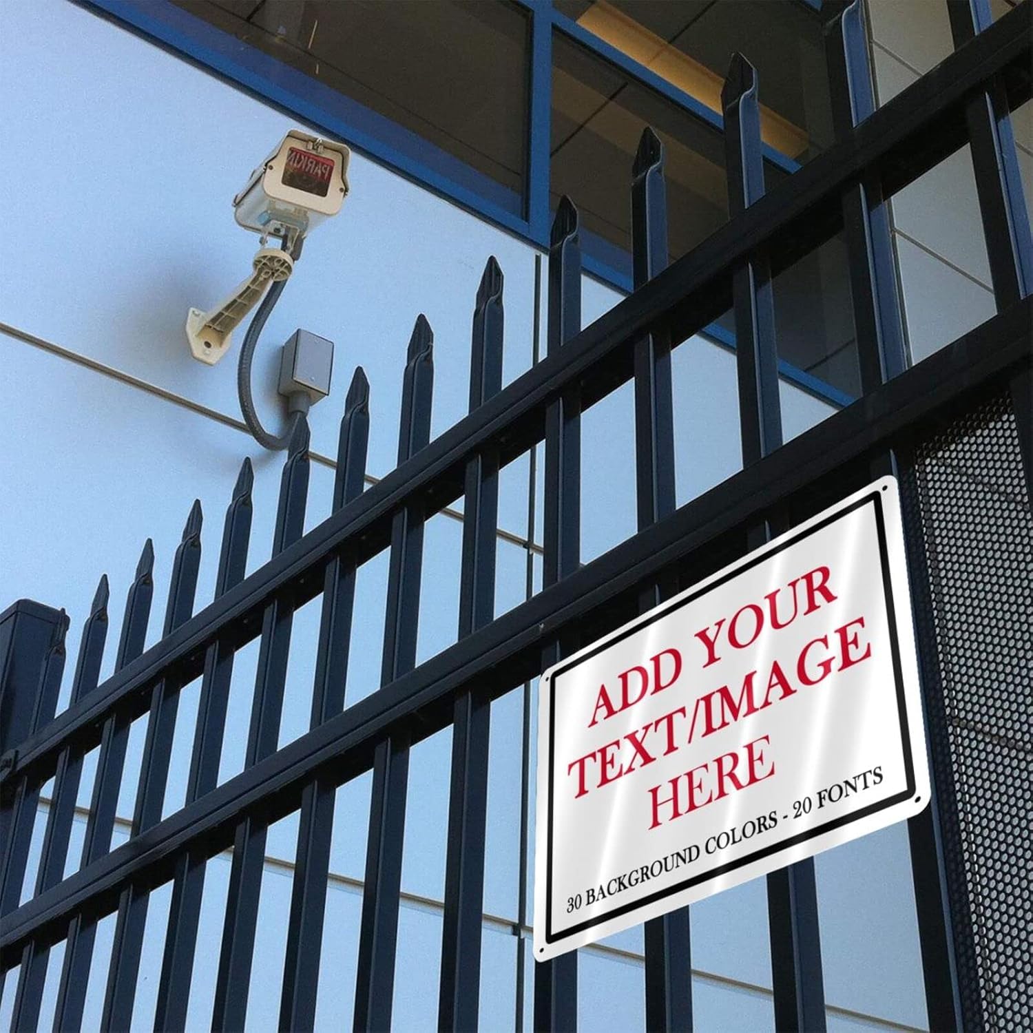 - 12 x 8 inch aluminum custom metal sign with 4 pre-drilled holes on the side that can be easily attached to any surface such as walls, doors or fences with cable ties or screws.