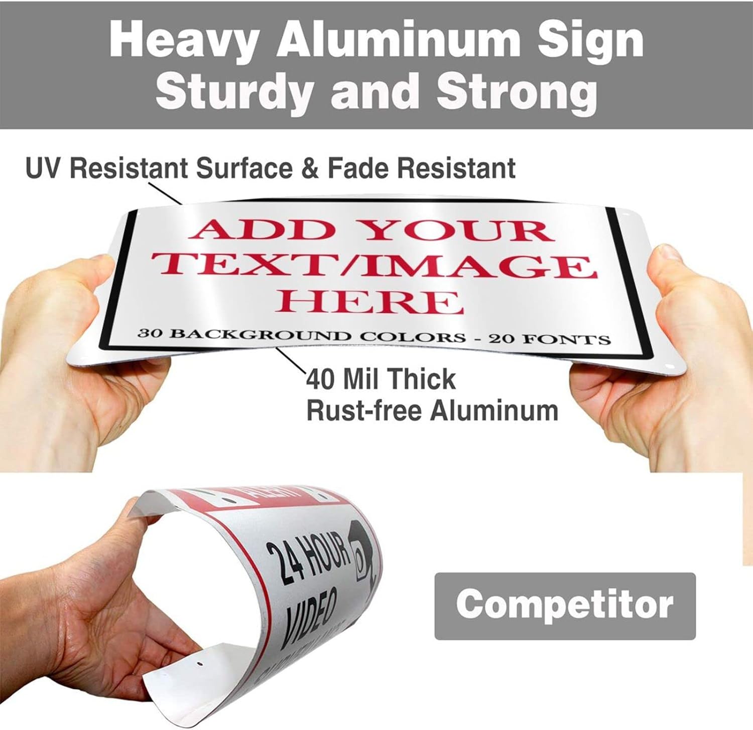 Custom Signs Outdoor Metal Sign - 12 x 8 Personalized Aluminum Rust-Proof Entrance Signs, Garden Hazard Intersection Parking Decorative (Black Text Box)