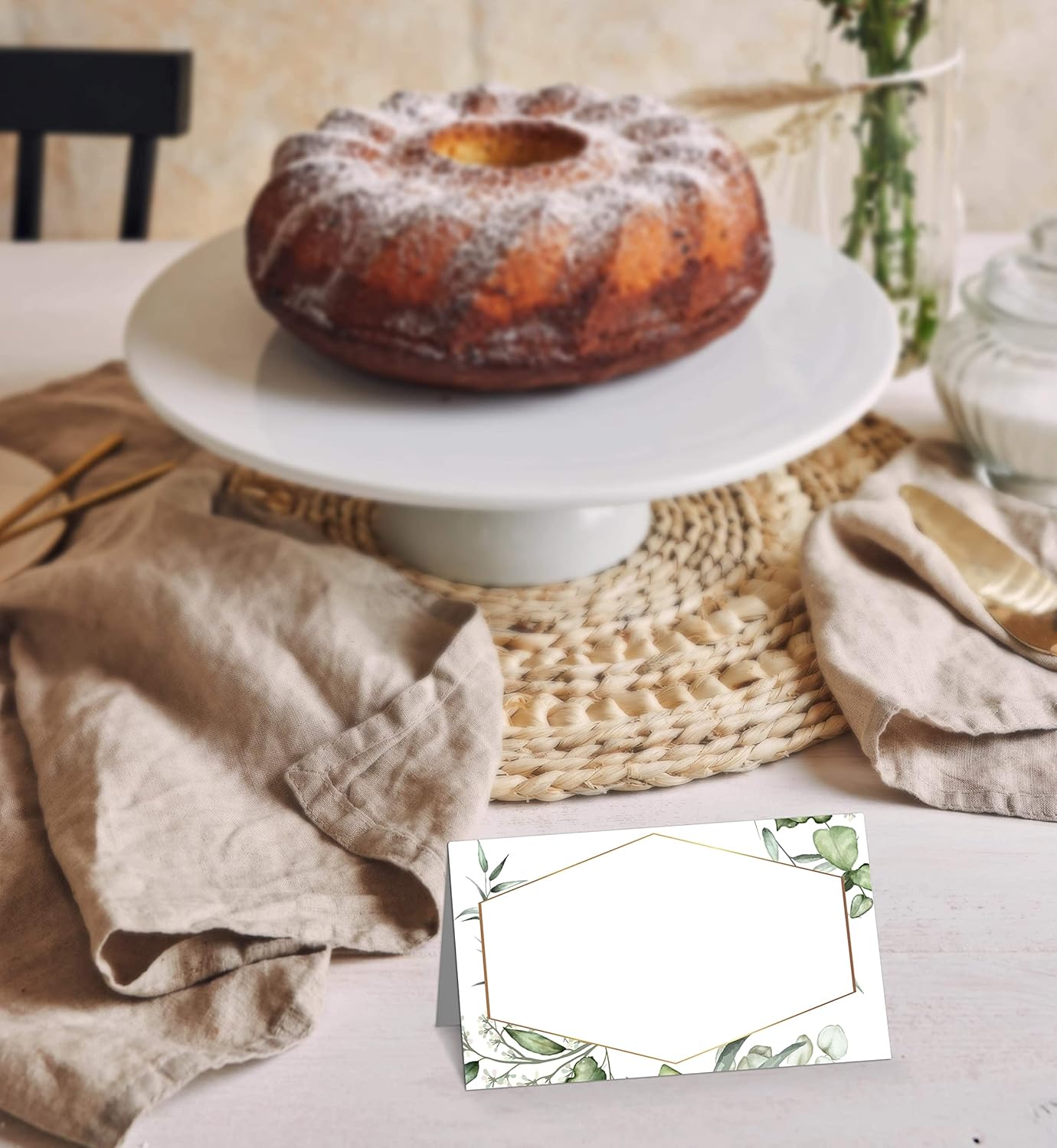 Gold Foil Greenery Table Place Card, 25 Pcs Tent Style Cards Set with Green Eucalyptus, Editable Name Cards for Table Seating, Food Lables for Birthday Party, Baby Shower, Wedding, Bridal Shower(12)