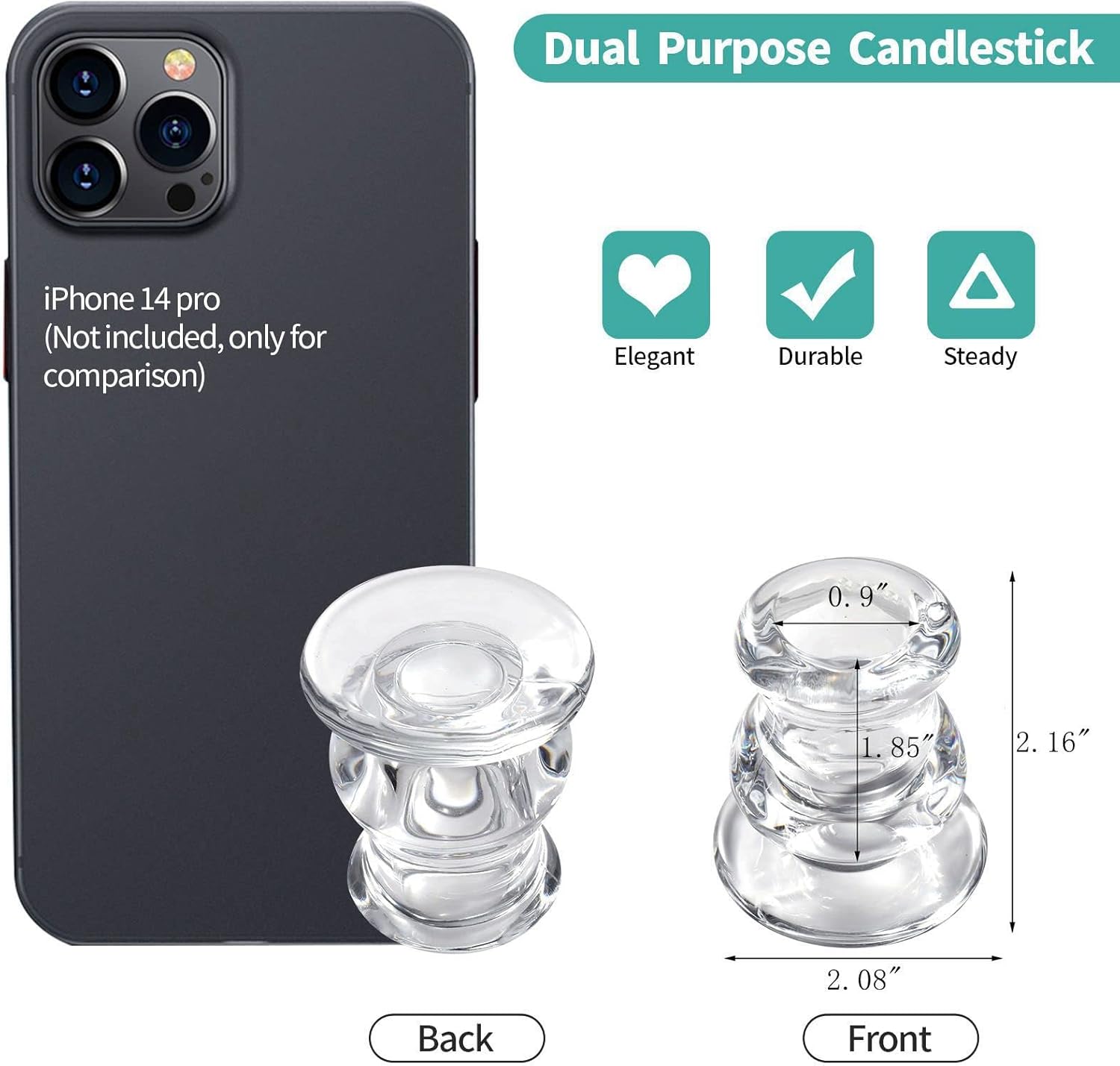 - CLEAR CANDLE HOLDERS--【Universal Size】Top inner diameter 0.9'', bottom diameter 2'',high 2.1''. Small and cute, but it can hold the candle firmly enough. IYOUYA candle holders fit most standard taper candles, candle holders with cute round shape give your home a nice sparkle.(CANDLES ARE NOT INCLUDED)