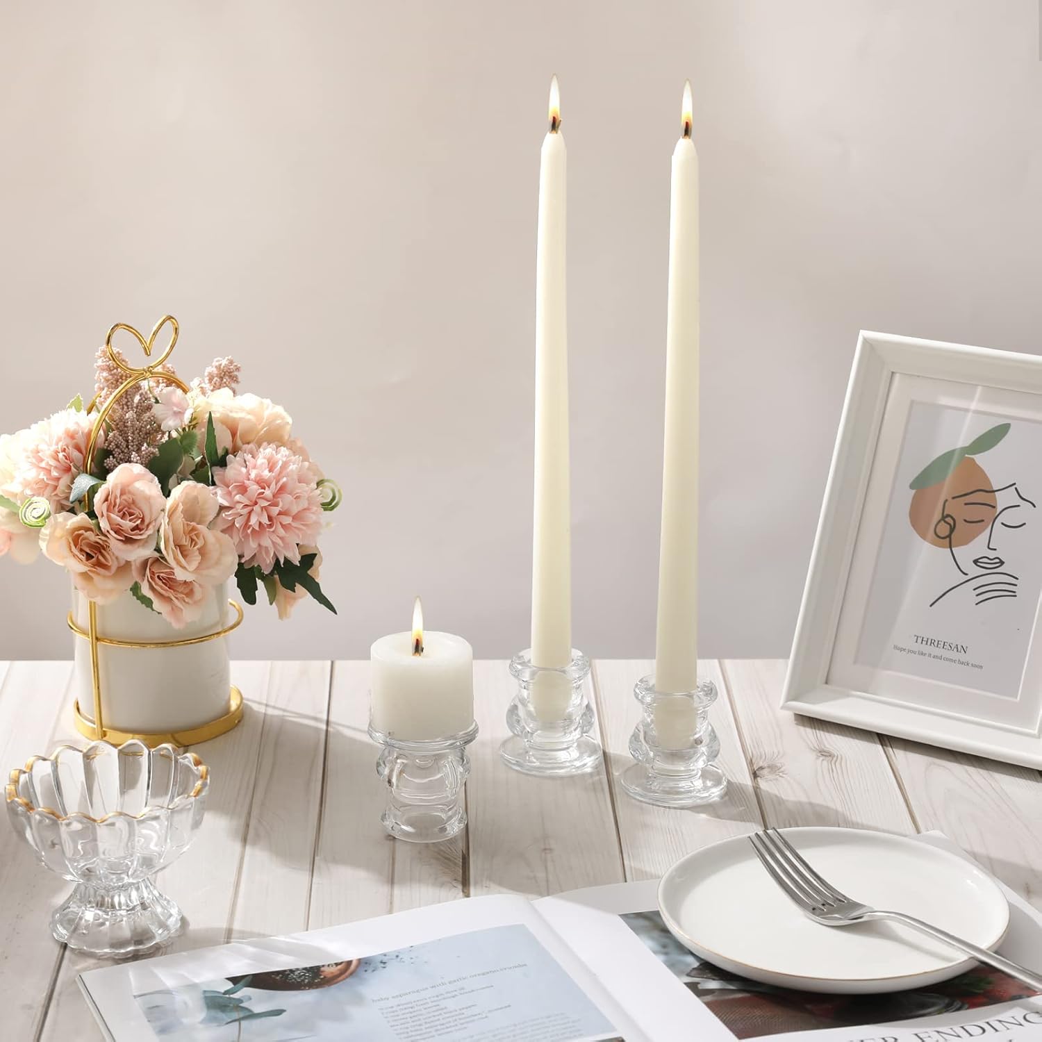 - GLASS CANDLE HOLDER--【Decorating Occasion】The candle holder is simple and elegant, suitable for tapered candles and pillar candles. Decorate for Valentine's Day, Christmas, New Year and Thanksgiving. Create a romantic, warm and special atmosphere for yourself. Add a festive touch to the centre of your table.
