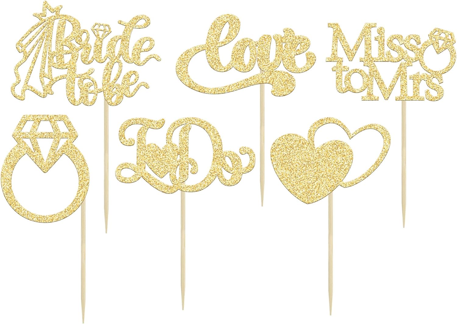 Gyufise 24Pcs Bride to Be Cupcake Toppers Gold Glitter I Do Love Heart Ring Miss To Mrs Cupcake Picks Bridal Shower Cake Decorations for Wedding Engagement Bachelorette Party Supplies