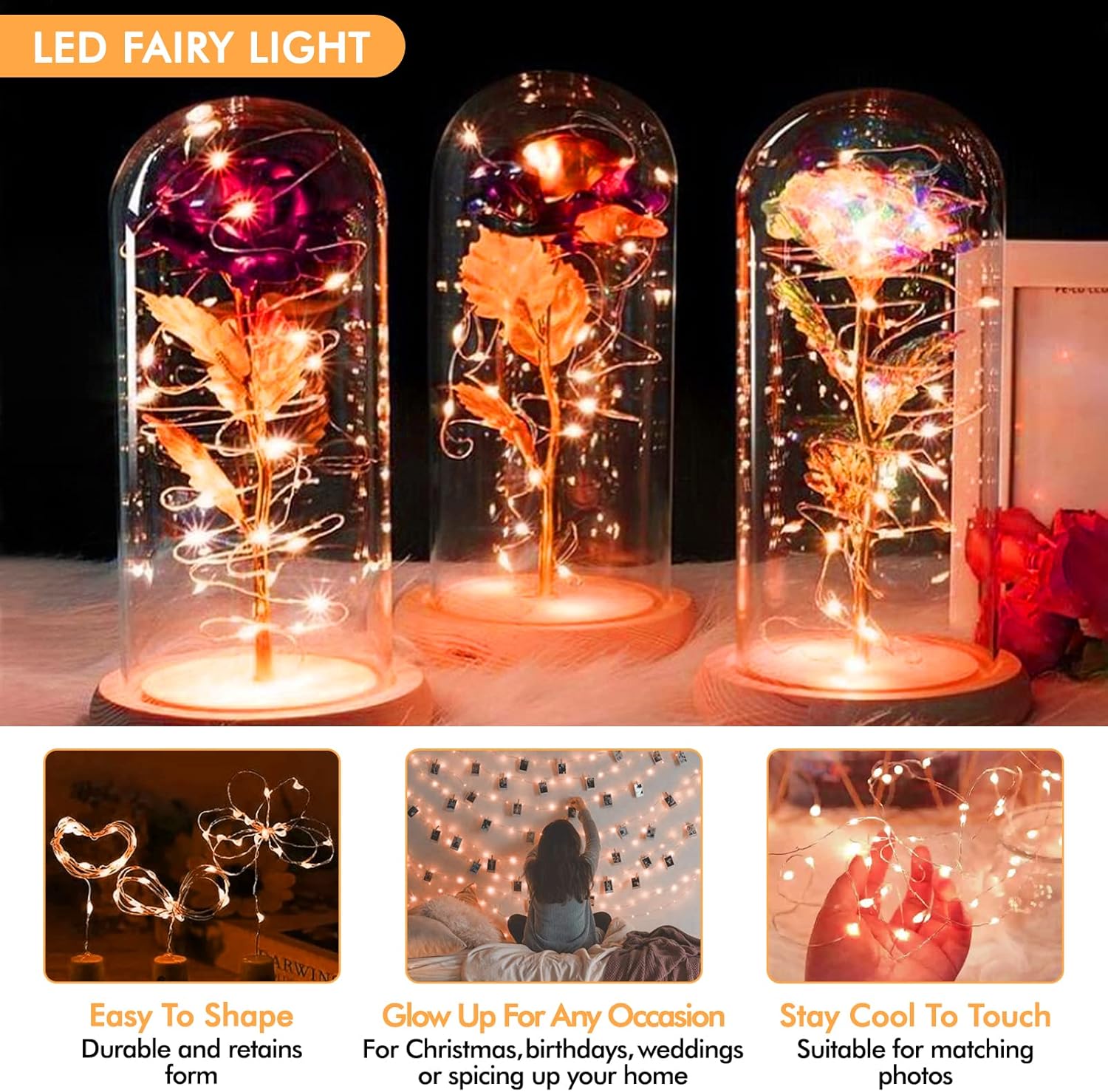 - ✨【Widely Used】The beautiful fairy light string helps to create a romantic atmosphere for anything, the bendable silver wire can be easily built into the shape you want. These starry lights are widely used, they can perfectly decorate weddings, parties, Halloween, Christmas, bedrooms, Valentine's Day, flowers, jars, vases, planting, and other crafts, etc. LED fairy lights string is small and mini, easy to carry and place anywhere you like