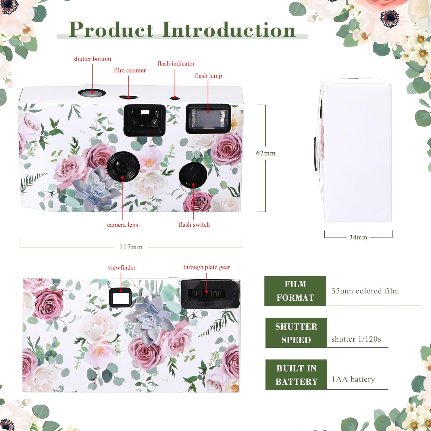 - Exquisite and Novelty: the throw away camera for wedding is designed with rose patterns, looks romantic and delicate, and a classic camera style makes them more retro and modern, suitable for you to use at anniversaries or wedding parties, adding a warm atmosphere to the parties and making you stand out from the crowd when using this camera