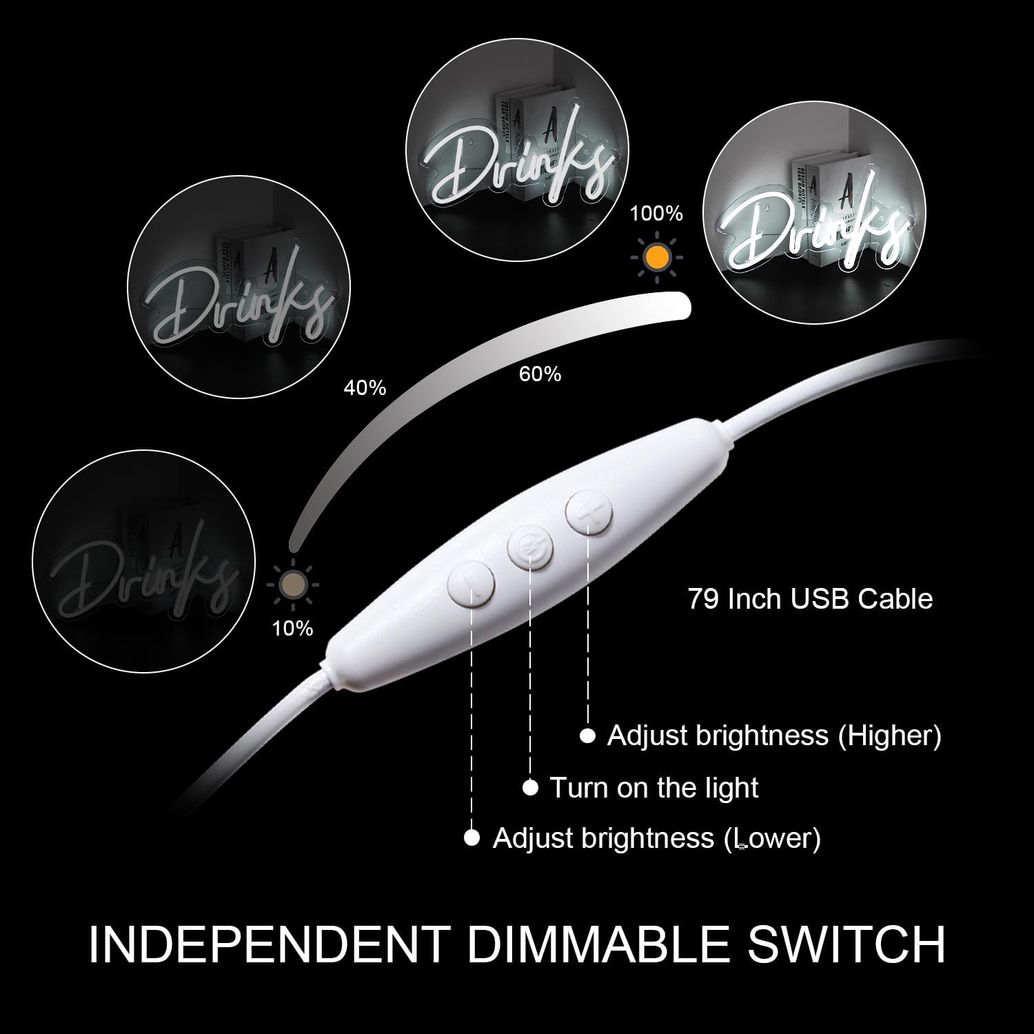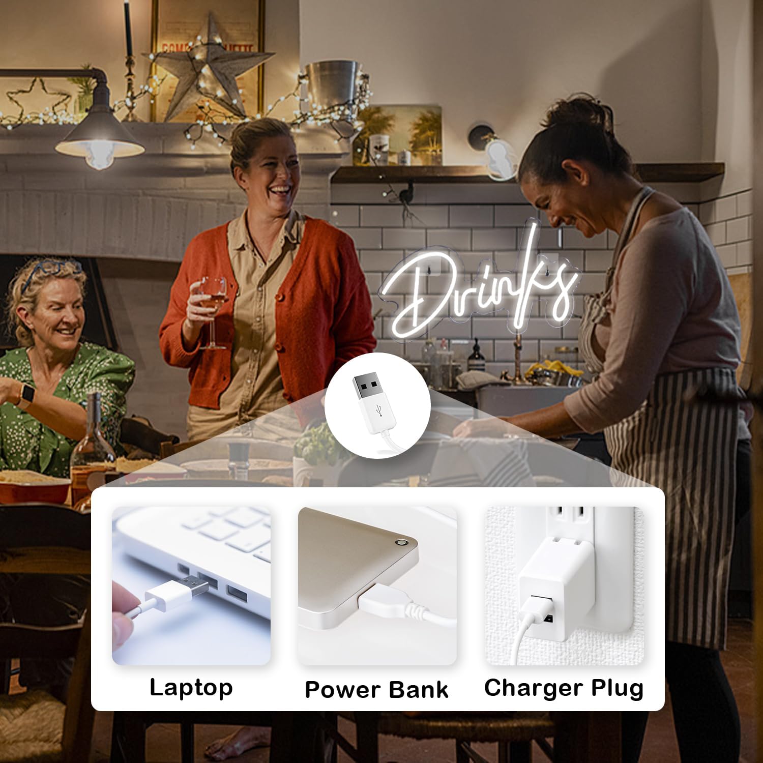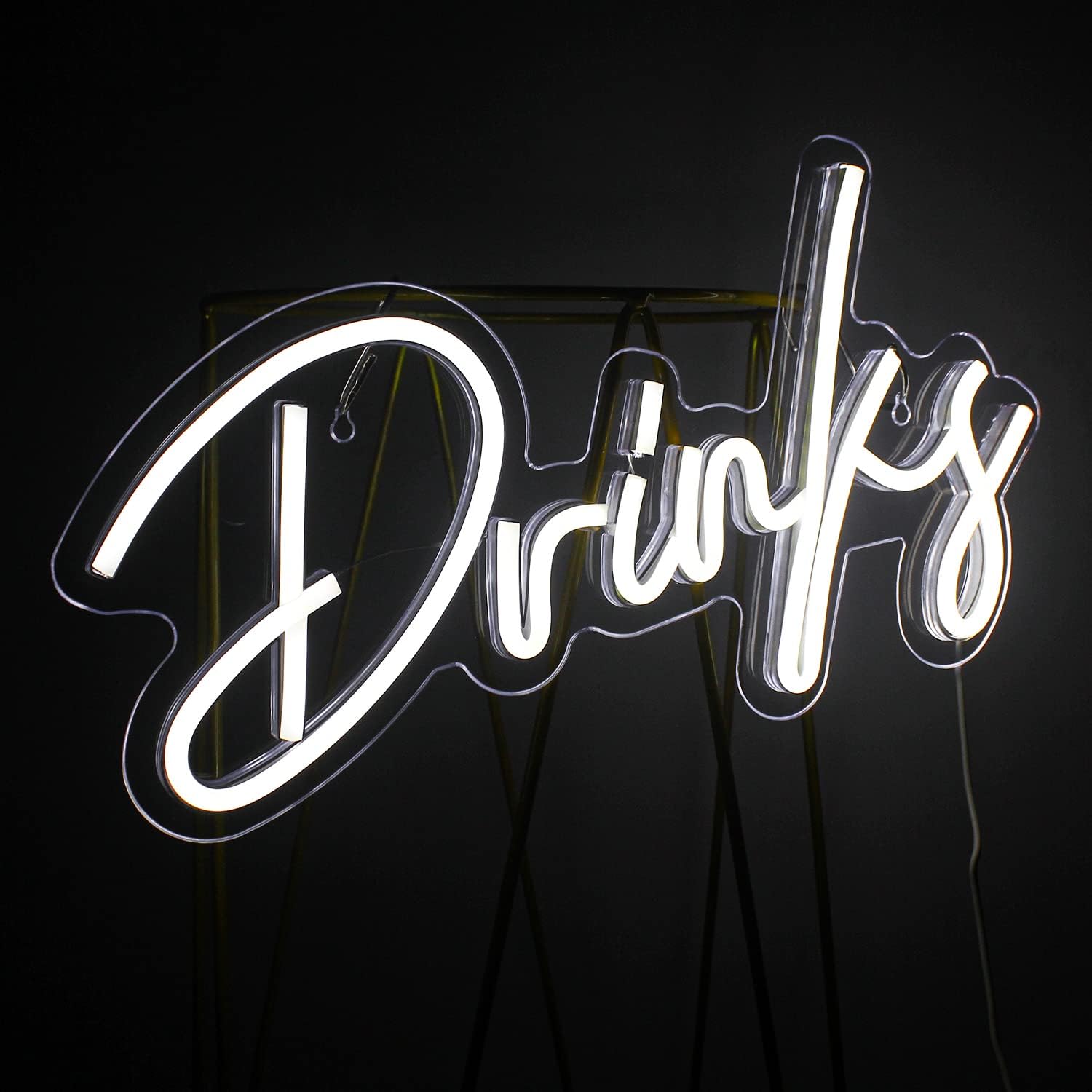 Looklight Drinks Neon Sign,Bar Neon Sign,Neon Signs for Wall Decor,Neon Sign For Room,White Neon Light Sign Led Neon Bar Signs USB Connectivity Light Up Wall Decor for Teen Room Bedroom Bar Store
